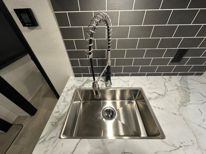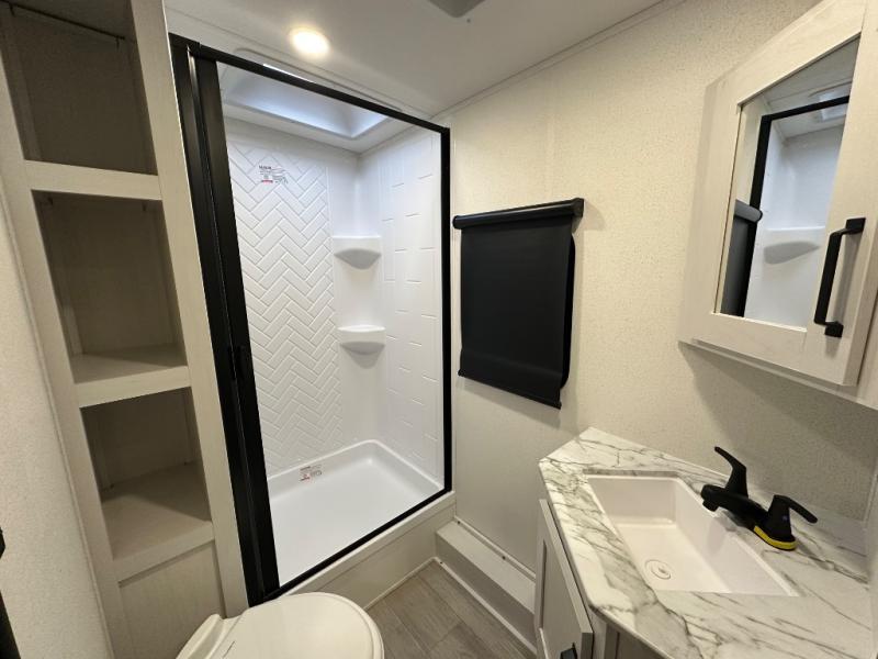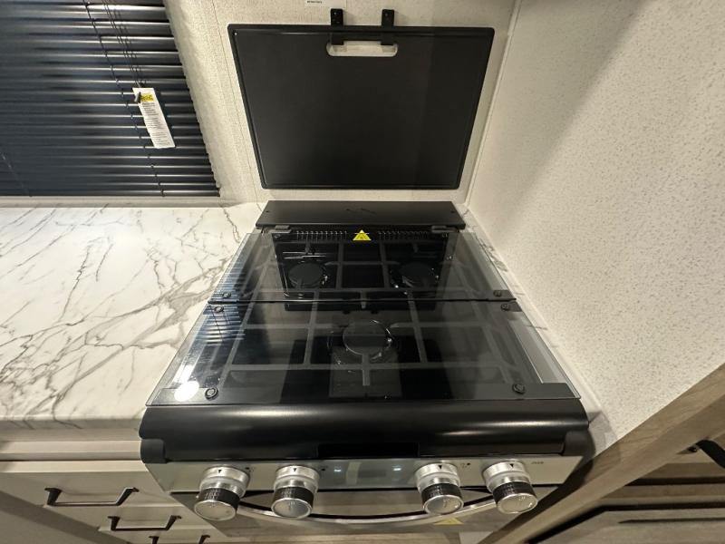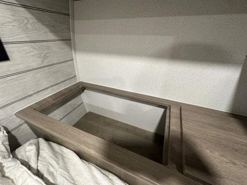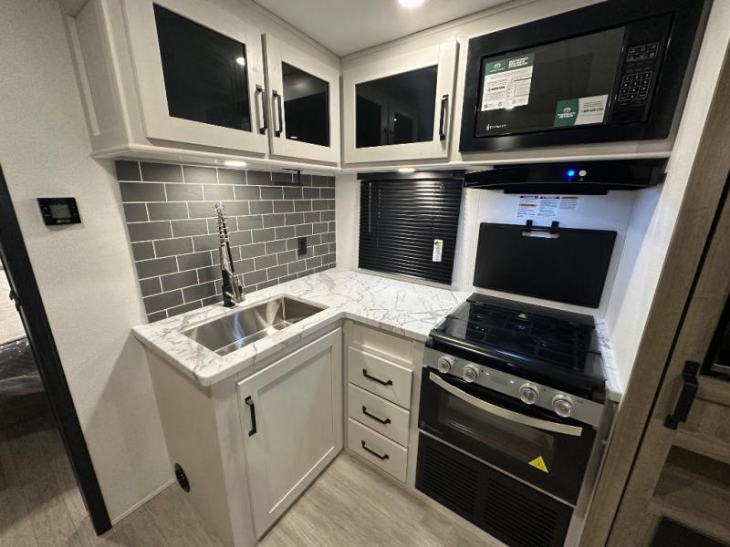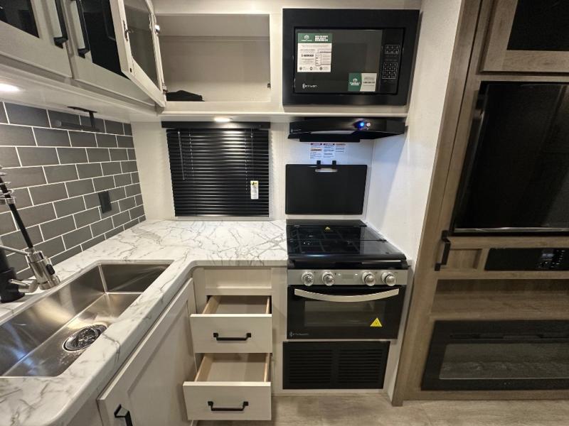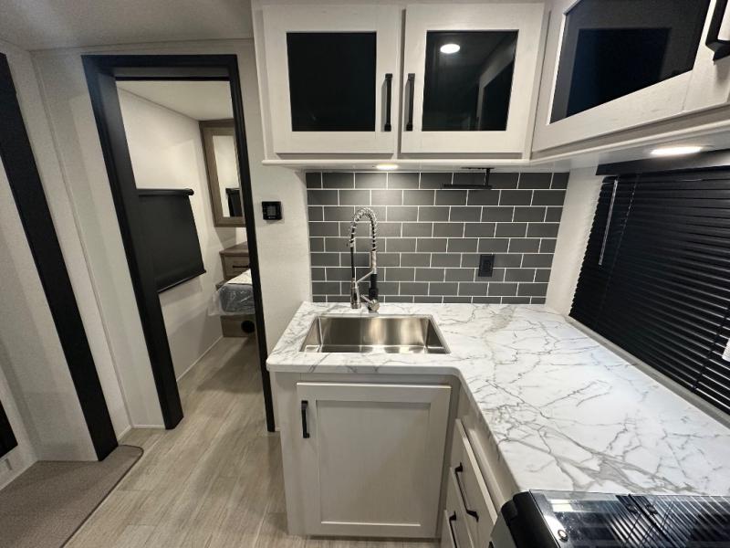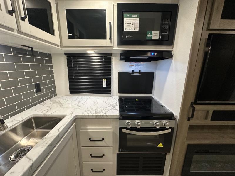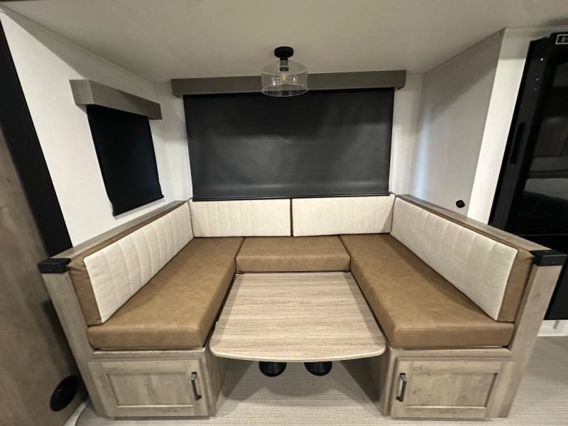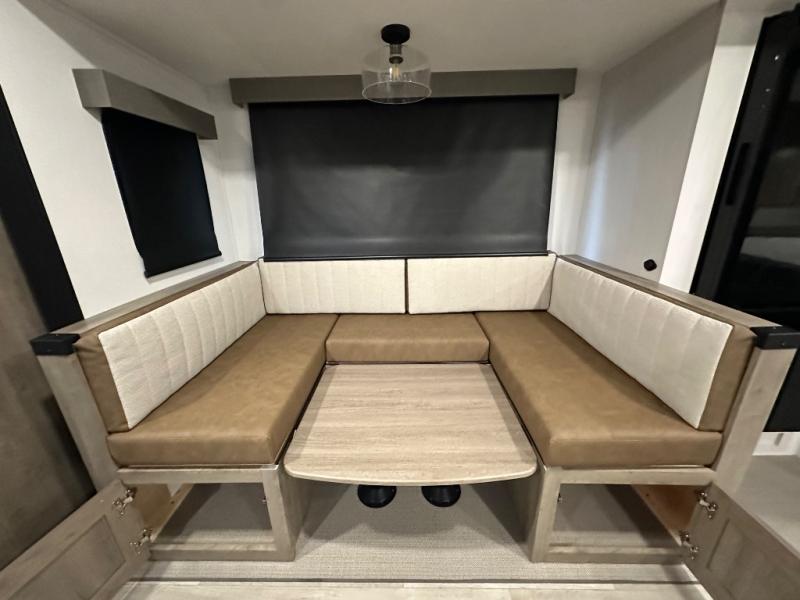 Each Puma Tracks travel trailer by Forest River is constructed with a fully enclosed/heated underbelly for added protection against the elements, plus a fully laminated roof and rear wall for durability. The slam latch baggage doors with magnets will make it easier than ever to pack up your camp gear, and the power awning with LED lights will provide shade during the day and inviting ambiance at night. Head inside to enjoy the roller shades, smoked glass kitchen cabinet doors, stainless-steel sink, and LED lights to keep your space well lit. Some of the available options include a bedroom A/C, a Wi-Fi booster, heated holding tanks, and more!