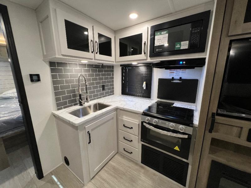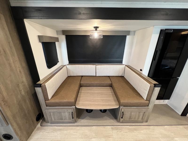 Each Puma Tracks travel trailer by Forest River is constructed with a fully enclosed/heated underbelly for added protection against the elements, plus a fully laminated roof and rear wall for durability. The slam latch baggage doors with magnets will make it easier than ever to pack up your camp gear, and the power awning with LED lights will provide shade during the day and inviting ambiance at night. Head inside to enjoy the roller shades, smoked glass kitchen cabinet doors, stainless-steel sink, and LED lights to keep your space well lit. Some of the available options include a bedroom A/C, a Wi-Fi booster, heated holding tanks, and more!