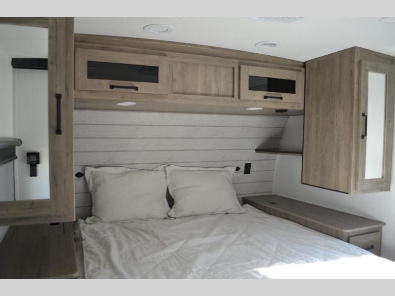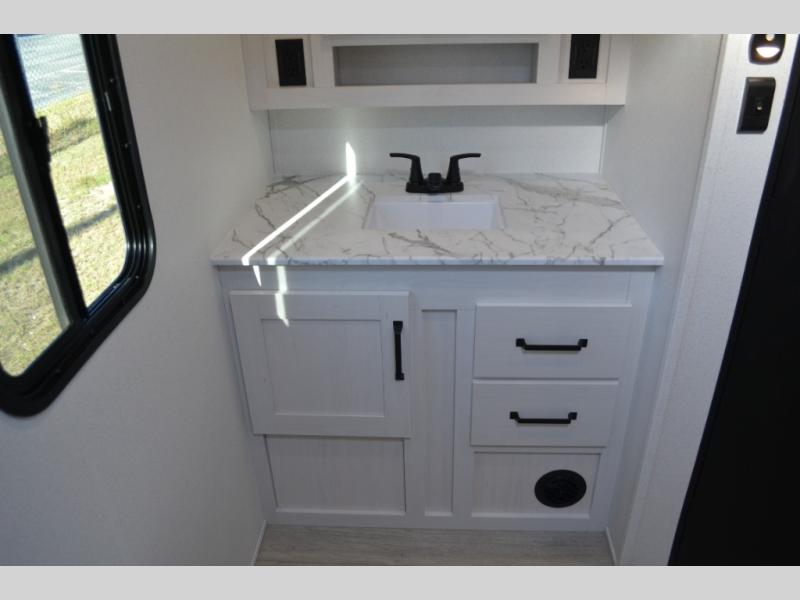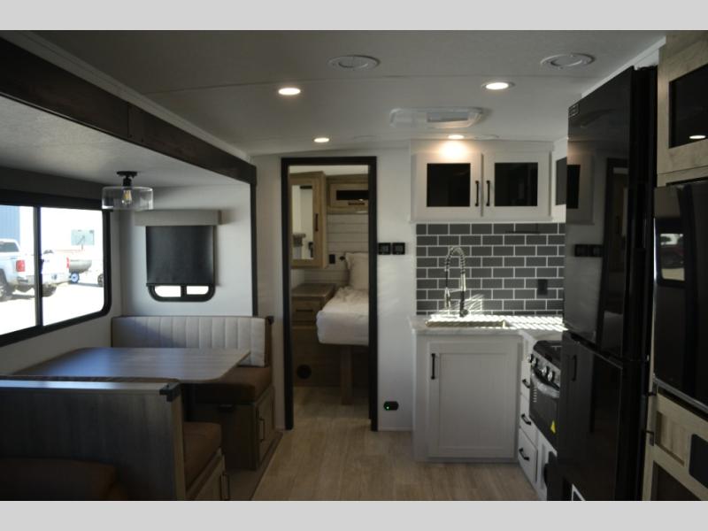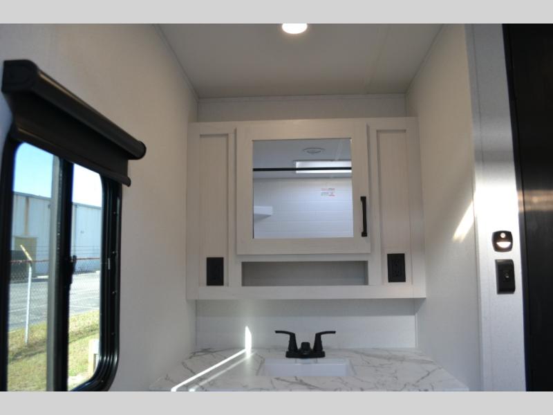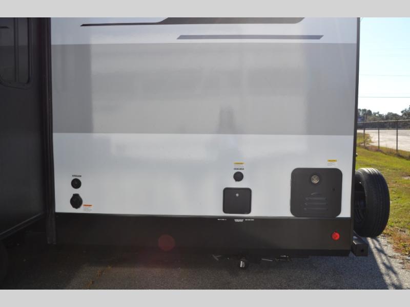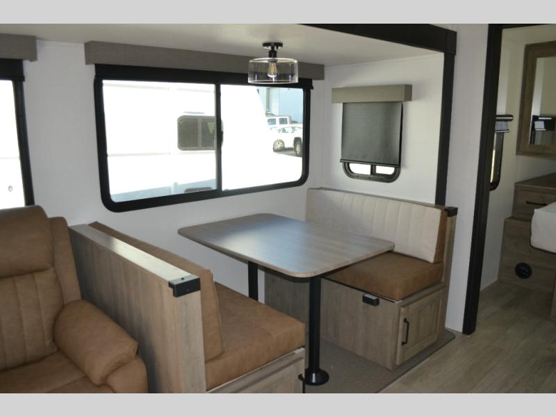 Each Puma Tracks travel trailer by Forest River is constructed with a fully enclosed/heated underbelly for added protection against the elements, plus a fully laminated roof and rear wall for durability. The slam latch baggage doors with magnets will make it easier than ever to pack up your camp gear, and the power awning with LED lights will provide shade during the day and inviting ambiance at night. Head inside to enjoy the roller shades, smoked glass kitchen cabinet doors, stainless-steel sink, and LED lights to keep your space well lit. Some of the available options include a bedroom A/C, a Wi-Fi booster, heated holding tanks, and more!