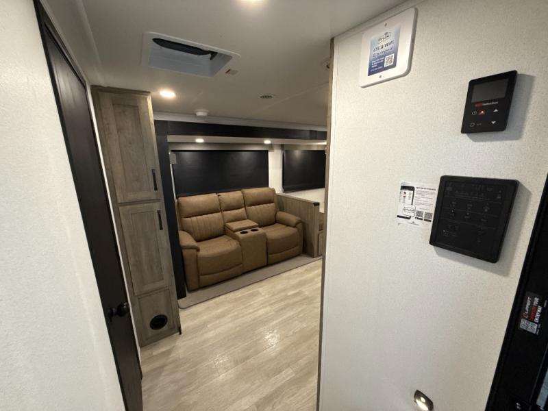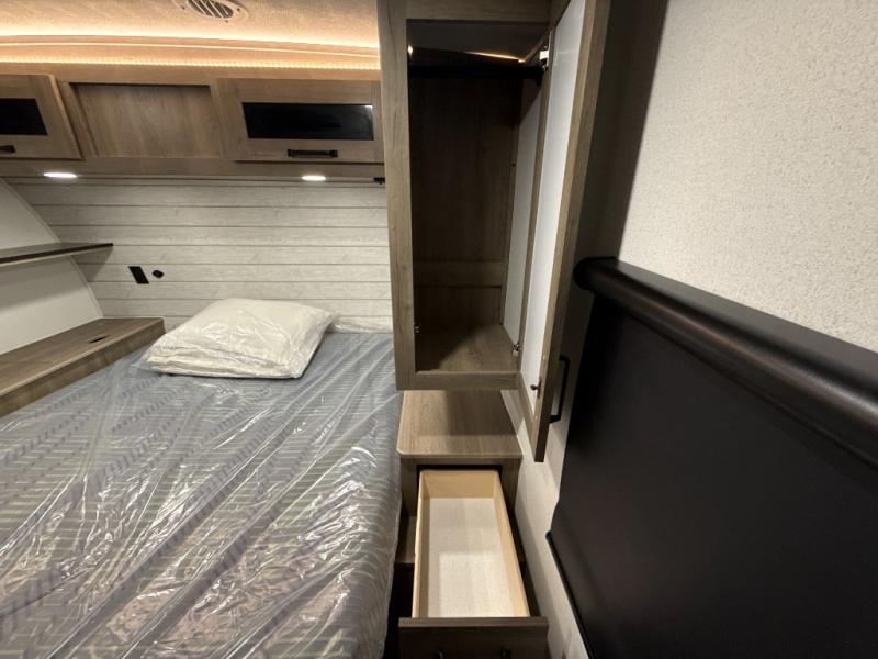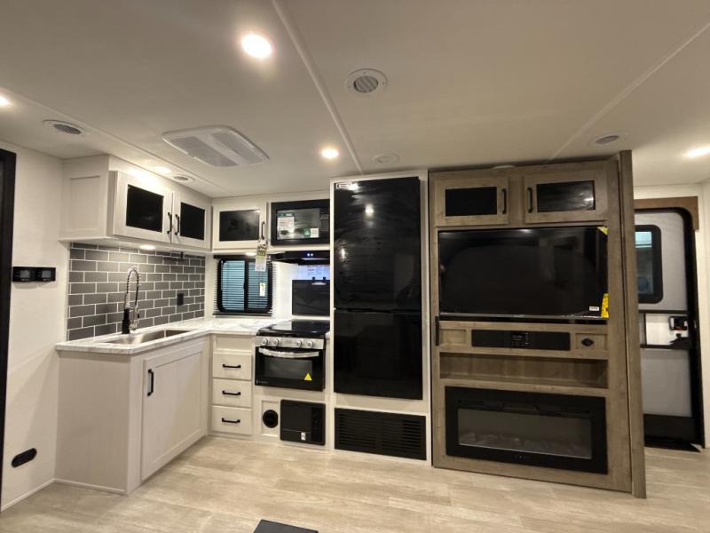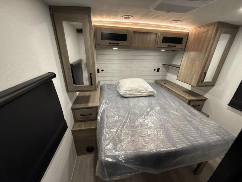 Each Puma Tracks travel trailer by Forest River is constructed with a fully enclosed/heated underbelly for added protection against the elements, plus a fully laminated roof and rear wall for durability. The slam latch baggage doors with magnets will make it easier than ever to pack up your camp gear, and the power awning with LED lights will provide shade during the day and inviting ambiance at night. Head inside to enjoy the roller shades, smoked glass kitchen cabinet doors, stainless-steel sink, and LED lights to keep your space well lit. Some of the available options include a bedroom A/C, a Wi-Fi booster, heated holding tanks, and more!