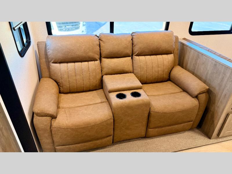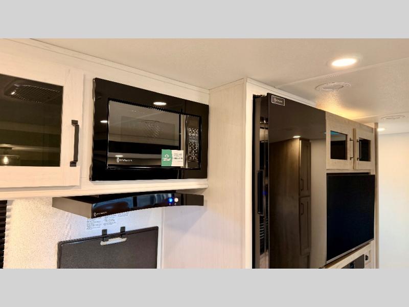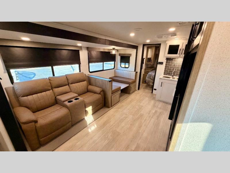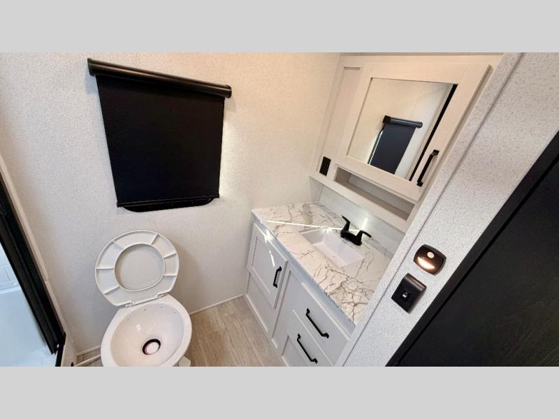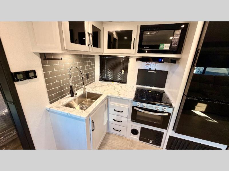 Each Puma Tracks travel trailer by Forest River is constructed with a fully enclosed/heated underbelly for added protection against the elements, plus a fully laminated roof and rear wall for durability. The slam latch baggage doors with magnets will make it easier than ever to pack up your camp gear, and the power awning with LED lights will provide shade during the day and inviting ambiance at night. Head inside to enjoy the roller shades, smoked glass kitchen cabinet doors, stainless-steel sink, and LED lights to keep your space well lit. Some of the available options include a bedroom A/C, a Wi-Fi booster, heated holding tanks, and more!
