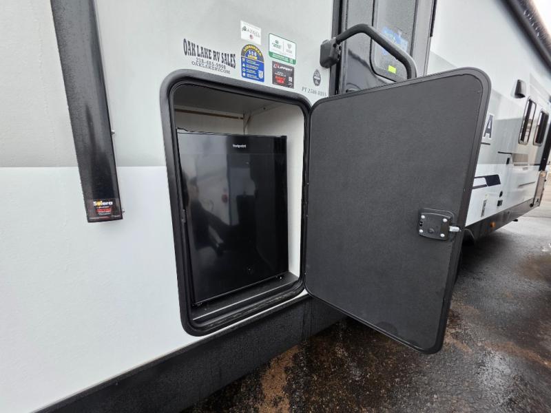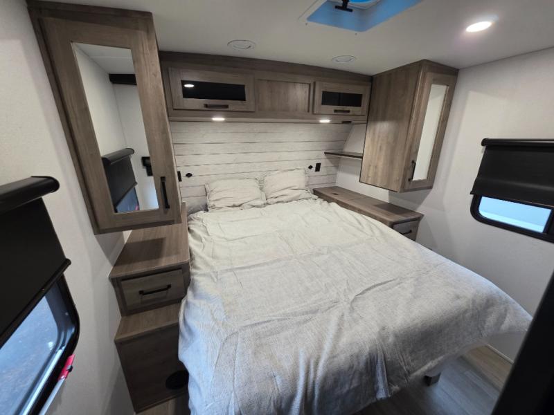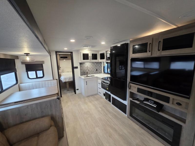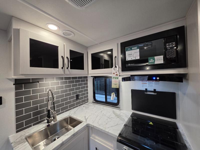 Each Puma Tracks travel trailer by Forest River is constructed with a fully enclosed/heated underbelly for added protection against the elements, plus a fully laminated roof and rear wall for durability. The slam latch baggage doors with magnets will make it easier than ever to pack up your camp gear, and the power awning with LED lights will provide shade during the day and inviting ambiance at night. Head inside to enjoy the roller shades, smoked glass kitchen cabinet doors, stainless-steel sink, and LED lights to keep your space well lit. Some of the available options include a bedroom A/C, a Wi-Fi booster, heated holding tanks, and more!