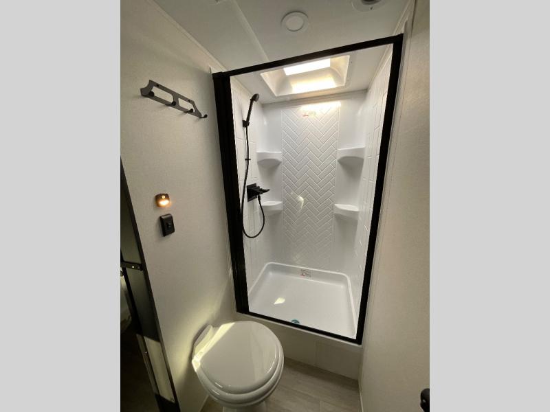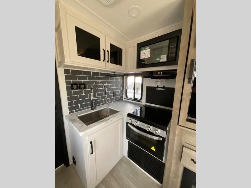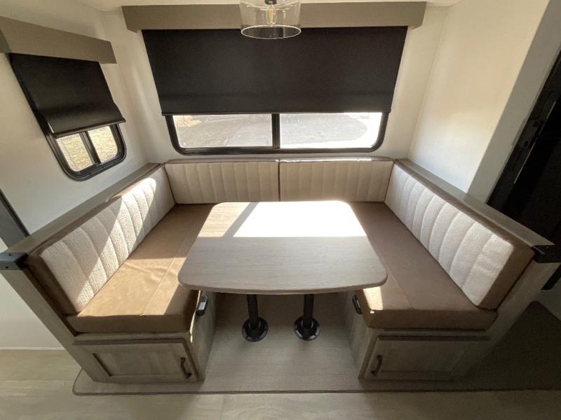 Each Puma Tracks travel trailer by Forest River is constructed with a fully enclosed/heated underbelly for added protection against the elements, plus a fully laminated roof and rear wall for durability. The slam latch baggage doors with magnets will make it easier than ever to pack up your camp gear, and the power awning with LED lights will provide shade during the day and inviting ambiance at night. Head inside to enjoy the roller shades, smoked glass kitchen cabinet doors, stainless-steel sink, and LED lights to keep your space well lit. Some of the available options include a bedroom A/C, a Wi-Fi booster, heated holding tanks, and more!