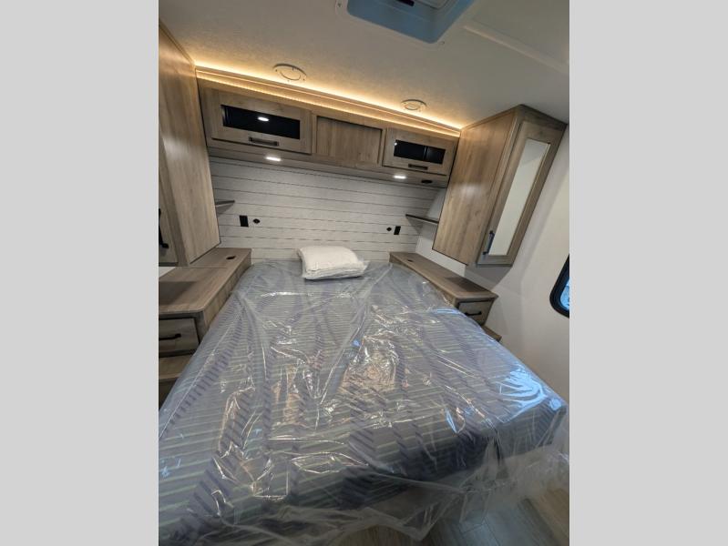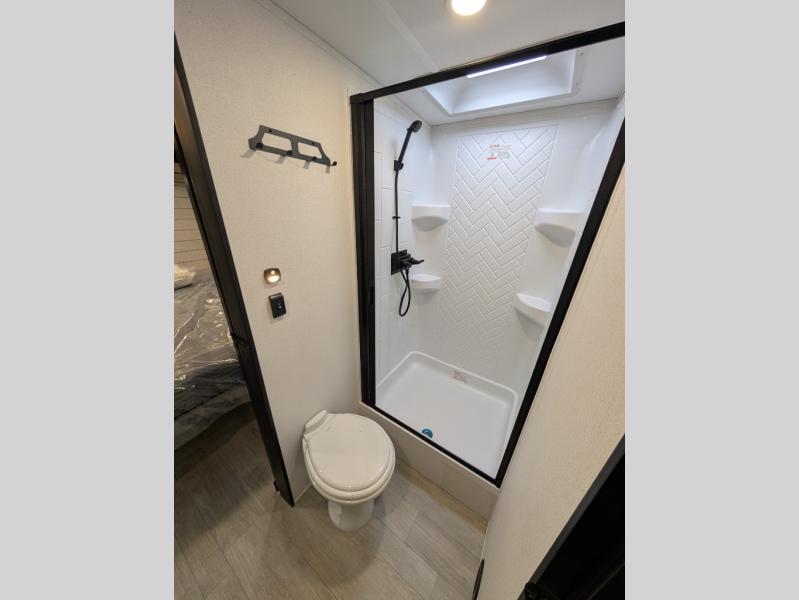 Each Puma Tracks travel trailer by Forest River is constructed with a fully enclosed/heated underbelly for added protection against the elements, plus a fully laminated roof and rear wall for durability. The slam latch baggage doors with magnets will make it easier than ever to pack up your camp gear, and the power awning with LED lights will provide shade during the day and inviting ambiance at night. Head inside to enjoy the roller shades, smoked glass kitchen cabinet doors, stainless-steel sink, and LED lights to keep your space well lit. Some of the available options include a bedroom A/C, a Wi-Fi booster, heated holding tanks, and more!
