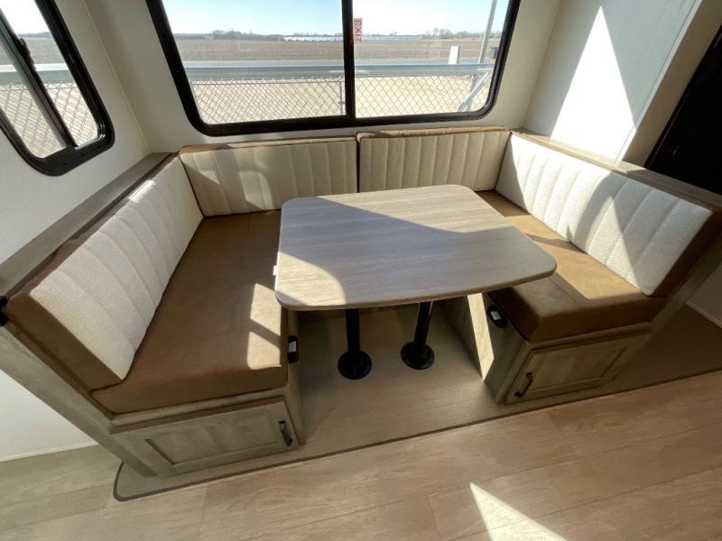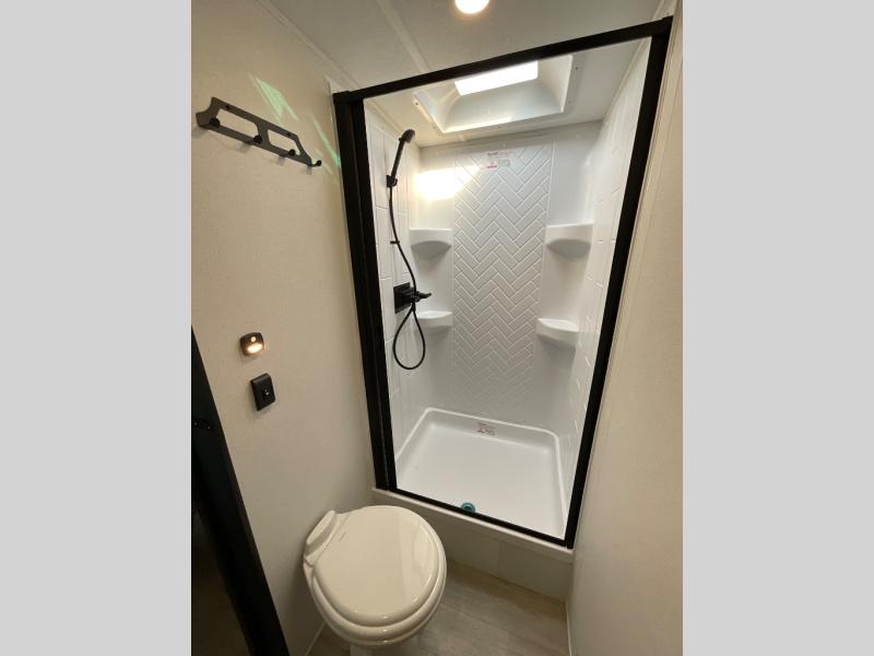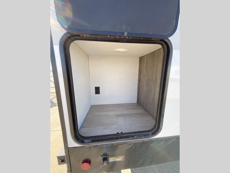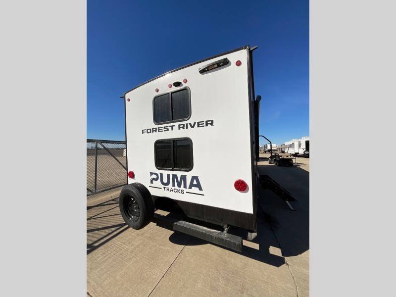 Each Puma Tracks travel trailer by Forest River is constructed with a fully enclosed/heated underbelly for added protection against the elements, plus a fully laminated roof and rear wall for durability. The slam latch baggage doors with magnets will make it easier than ever to pack up your camp gear, and the power awning with LED lights will provide shade during the day and inviting ambiance at night. Head inside to enjoy the roller shades, smoked glass kitchen cabinet doors, stainless-steel sink, and LED lights to keep your space well lit. Some of the available options include a bedroom A/C, a Wi-Fi booster, heated holding tanks, and more!