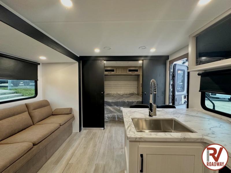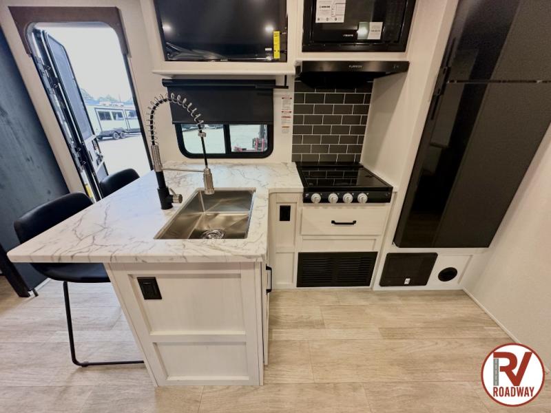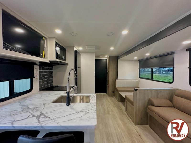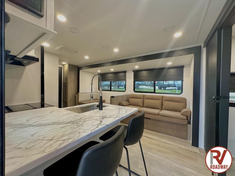 Each Puma Tracks travel trailer by Forest River is constructed with a fully enclosed/heated underbelly for added protection against the elements, plus a fully laminated roof and rear wall for durability. The slam latch baggage doors with magnets will make it easier than ever to pack up your camp gear, and the power awning with LED lights will provide shade during the day and inviting ambiance at night. Head inside to enjoy the roller shades, smoked glass kitchen cabinet doors, stainless-steel sink, and LED lights to keep your space well lit. Some of the available options include a bedroom A/C, a Wi-Fi booster, heated holding tanks, and more!