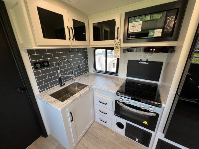 Each Puma Tracks travel trailer by Forest River is constructed with a fully enclosed/heated underbelly for added protection against the elements, plus a fully laminated roof and rear wall for durability. The slam latch baggage doors with magnets will make it easier than ever to pack up your camp gear, and the power awning with LED lights will provide shade during the day and inviting ambiance at night. Head inside to enjoy the roller shades, smoked glass kitchen cabinet doors, stainless-steel sink, and LED lights to keep your space well lit. Some of the available options include a bedroom A/C, a Wi-Fi booster, heated holding tanks, and more!