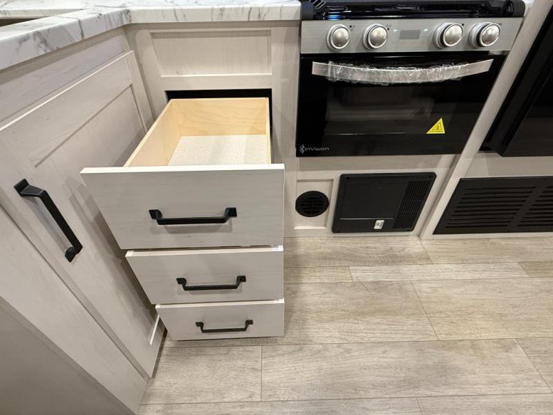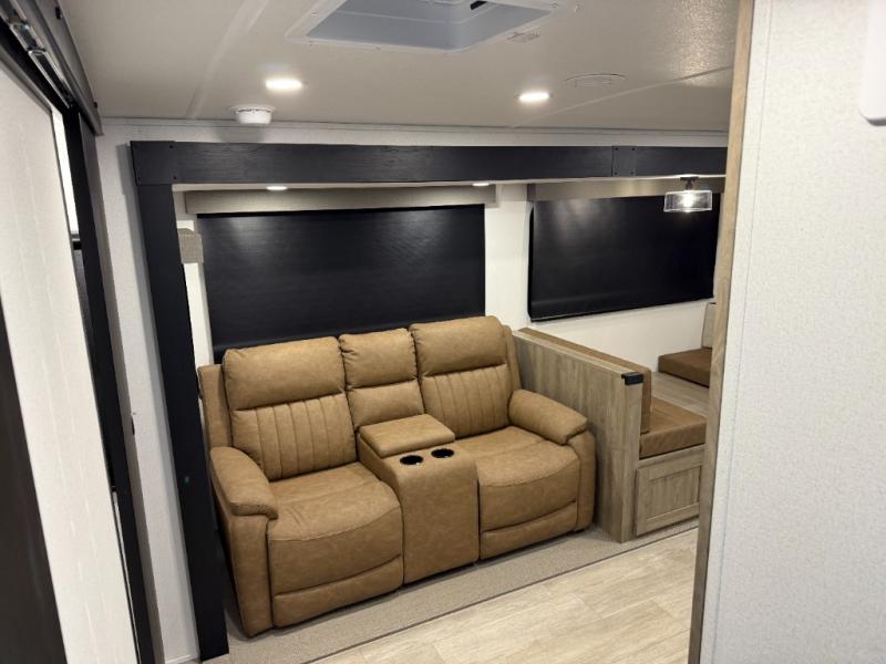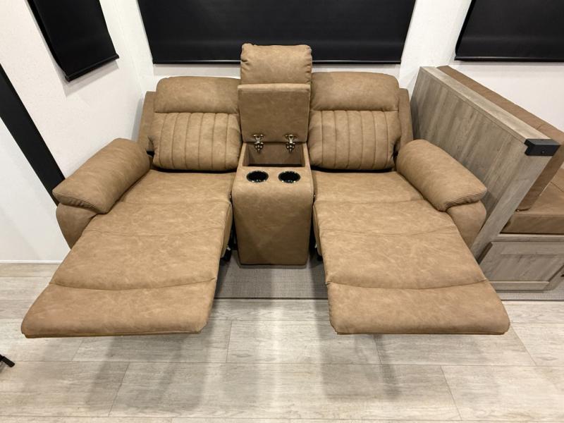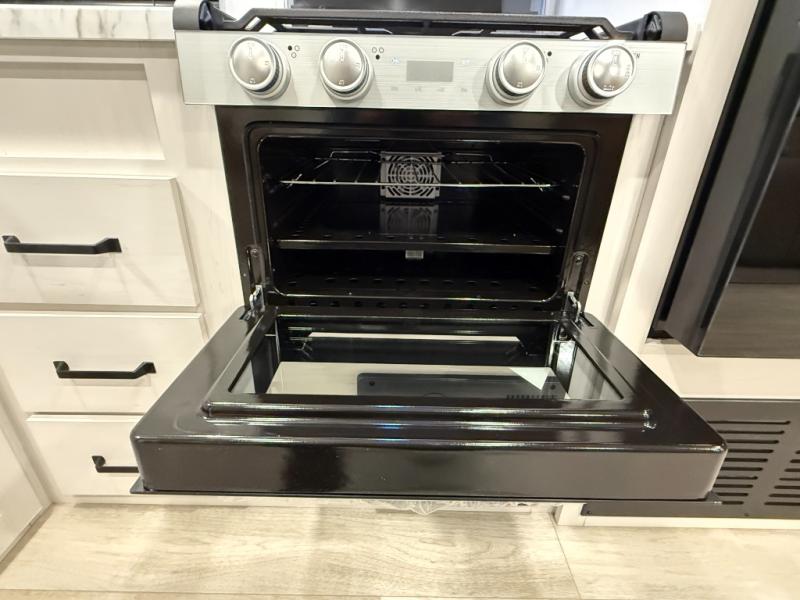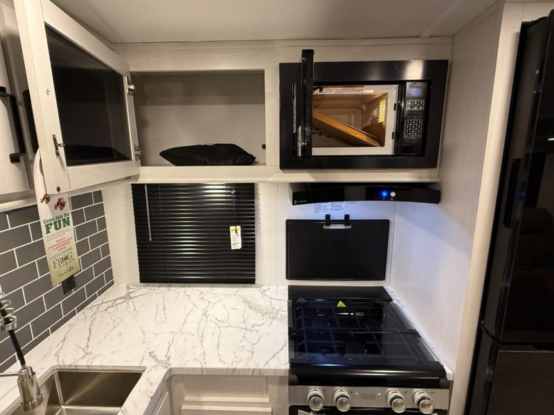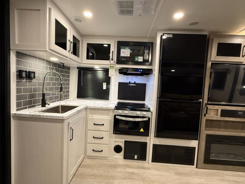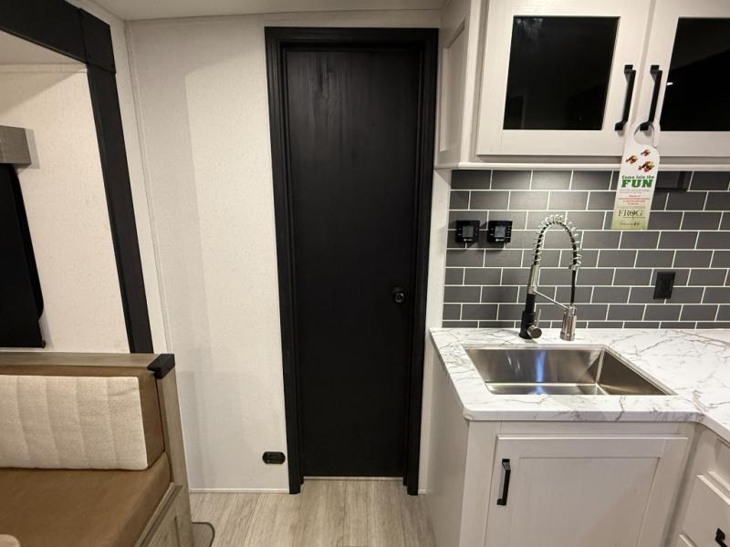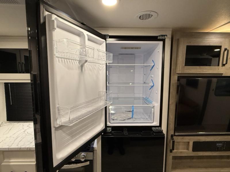 Whether you are looking for a bunkhouse, a private bedroom, or dual entry doors in your next RV, this one might just be the perfect fit with all those features! There are 45" x 72" bunk beds, each with their own wardrobe and their own private entry door, making it perfect for camping with older kids. The galley kitchen offers amenities such as a microwave, cooktop, an 11 cu. ft. refrigerator, and an L-shaped counter for preparing and serving meals. You will also find more storage, an entertainment center and a slide out sofa sleeper and booth dinette that offer more sleeping space when needed.