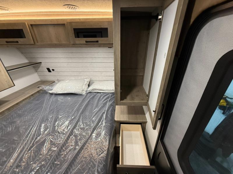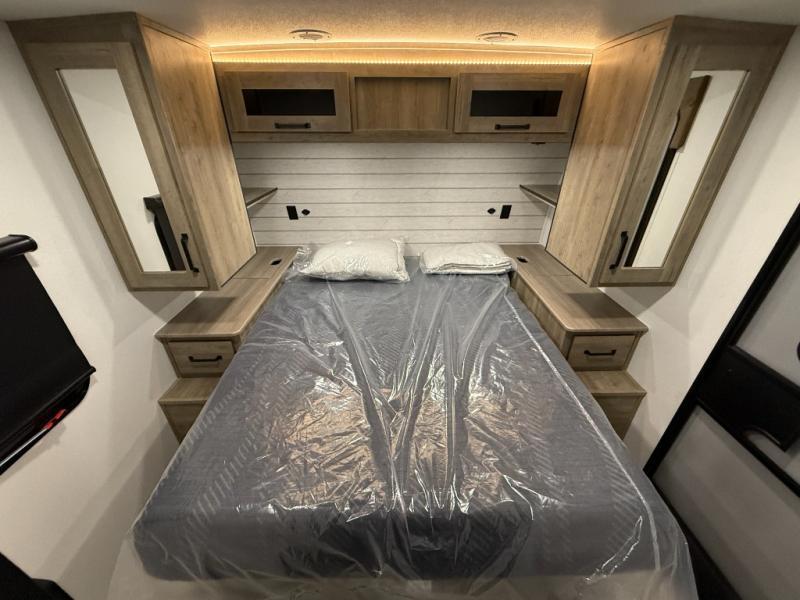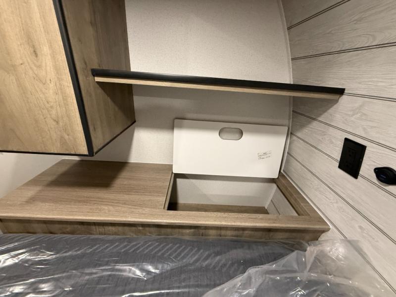 Each Puma Tracks travel trailer by Forest River is constructed with a fully enclosed/heated underbelly for added protection against the elements, plus a fully laminated roof and rear wall for durability. The slam latch baggage doors with magnets will make it easier than ever to pack up your camp gear, and the power awning with LED lights will provide shade during the day and inviting ambiance at night. Head inside to enjoy the roller shades, smoked glass kitchen cabinet doors, stainless-steel sink, and LED lights to keep your space well lit. Some of the available options include a bedroom A/C, a Wi-Fi booster, heated holding tanks, and more!