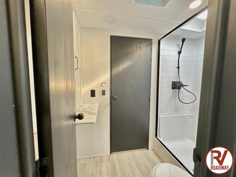 Each Puma Tracks travel trailer by Forest River is constructed with a fully enclosed/heated underbelly for added protection against the elements, plus a fully laminated roof and rear wall for durability. The slam latch baggage doors with magnets will make it easier than ever to pack up your camp gear, and the power awning with LED lights will provide shade during the day and inviting ambiance at night. Head inside to enjoy the roller shades, smoked glass kitchen cabinet doors, stainless-steel sink, and LED lights to keep your space well lit. Some of the available options include a bedroom A/C, a Wi-Fi booster, heated holding tanks, and more!