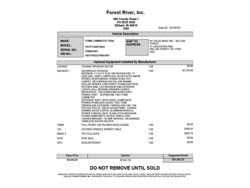 They went above and beyond to make a wonderful experience buying our camper. From sales to the guys doing the walk through to finance. I would highly recommend them to anyone. Very easy transaction. A+ rating in our book. Thank you for everything. - Jason