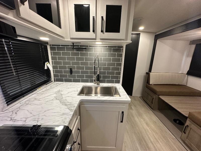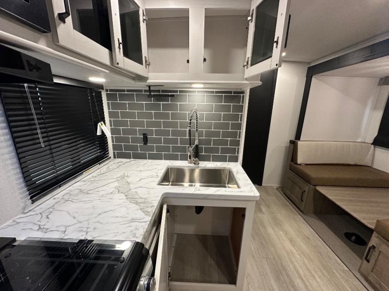 Each Puma Tracks travel trailer by Forest River is constructed with a fully enclosed/heated underbelly for added protection against the elements, plus a fully laminated roof and rear wall for durability. The slam latch baggage doors with magnets will make it easier than ever to pack up your camp gear, and the power awning with LED lights will provide shade during the day and inviting ambiance at night. Head inside to enjoy the roller shades, smoked glass kitchen cabinet doors, stainless-steel sink, and LED lights to keep your space well lit. Some of the available options include a bedroom A/C, a Wi-Fi booster, heated holding tanks, and more!