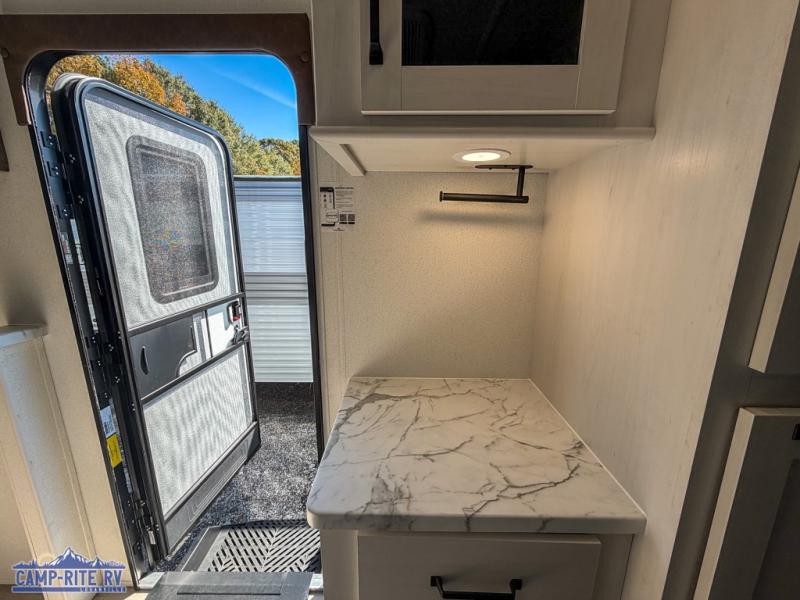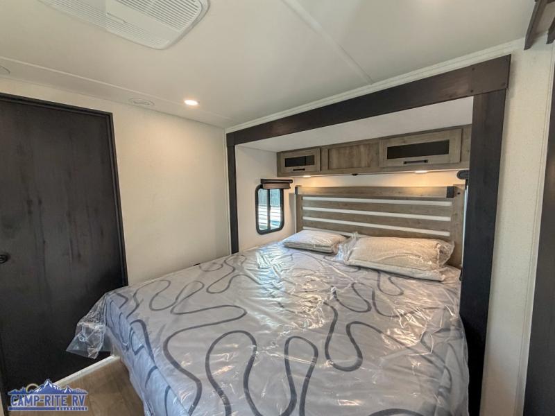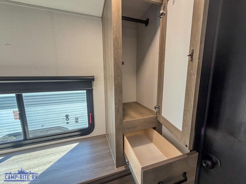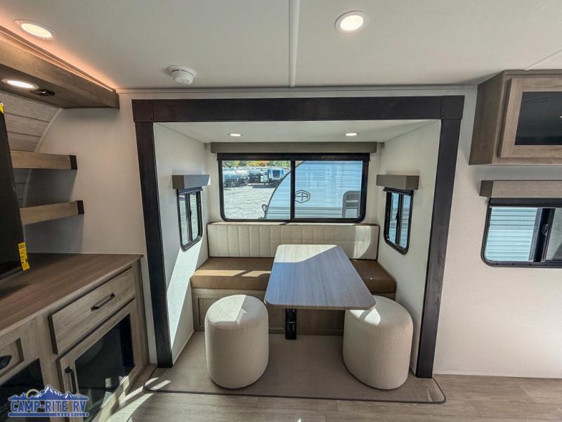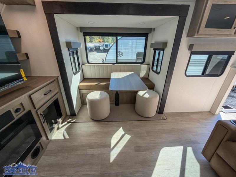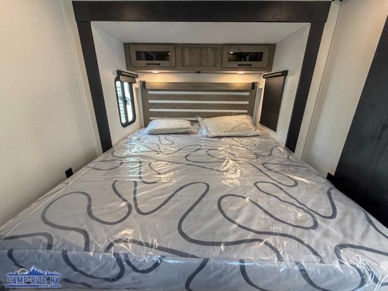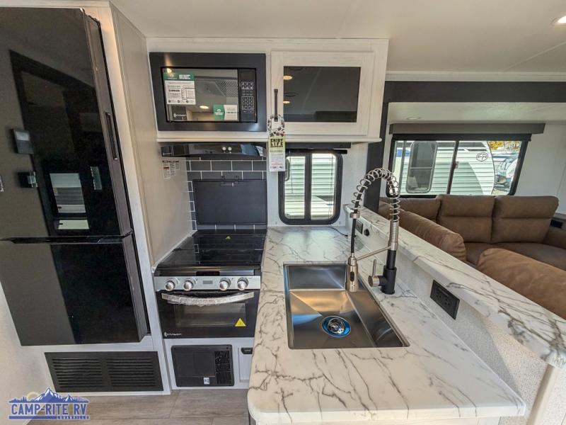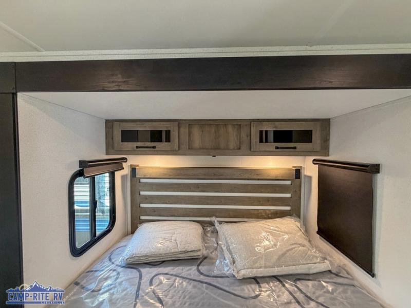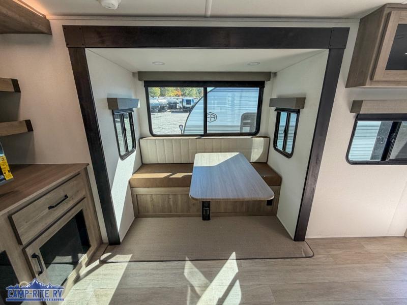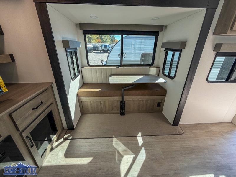 Each Puma Tracks travel trailer by Forest River is constructed with a fully enclosed/heated underbelly for added protection against the elements, plus a fully laminated roof and rear wall for durability. The slam latch baggage doors with magnets will make it easier than ever to pack up your camp gear, and the power awning with LED lights will provide shade during the day and inviting ambiance at night. Head inside to enjoy the roller shades, smoked glass kitchen cabinet doors, stainless-steel sink, and LED lights to keep your space well lit. Some of the available options include a bedroom A/C, a Wi-Fi booster, heated holding tanks, and more!