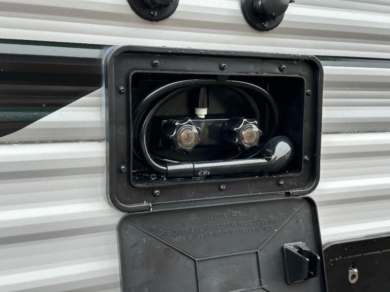 Conveniences: 17' power awning, LED lighting, AM/FM/Bluetooth stereo with exterior speakers, tinted windows, night roller shades, and outside shower