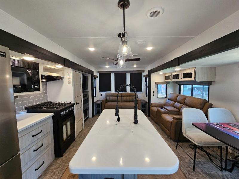 Experience extended-stay comfort in the 2026 Palomino Puma 37PFL destination trailer. With an open-concept front living and kitchen area, dual entry doors, and residential touches throughout, this spacious trailer is built for relaxing getaways and long-term stays.