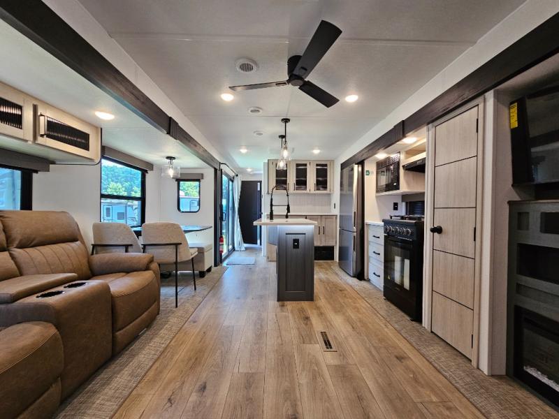 The 2026 Palomino Puma 37PFL offers a true residential feel with the flexibility to set up at your favorite destination spot. Whether you’re relaxing by the fireplace, enjoying the view through the expansive windows, or unwinding in your king bedroom with the convenience of in-unit laundry, this model makes extended stays feel just like home.