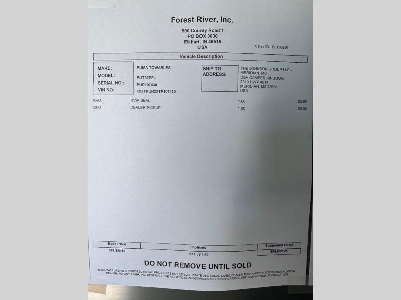New 2026 Forest River RV Puma Vista 37PFL Destination Trailer