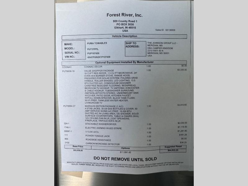 Each Puma Destination trailer by Palomino is designed to give you unforgettable getaways to the destination of your choice! The Value Shopper Package features Congoleum linoleum, LED lighting, an AM/FM/Bluetooth stereo, and an upgraded kitchen faucet to name a few comforts. Two exterior speakers are included with the required Marquis Edition, along with solid surface countertops, night roller shades, an outside shower, and four stabilizer jacks to help keep your unit secure. You will also appreciate the roof and side mount solar prep for off-grid capabilities, as well as WiFi prep if you need the option to work while you're away from home!