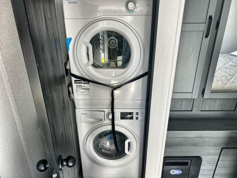 Get ready to enjoy your destination for a weekend or even longer in comfort with the front living and kitchen combined area. The sofa and booth dinette offer relaxing and dining space as well as sleeping space when needed. There are two recliners you are sure to love, as well as a fireplace to make it feel more like home. There is a kitchen island to prepare and serve meals from and wash the dishes. The kitchen offers full amenities including a stainless steel refrigerator and plenty of storage. You will surely enjoy the natural lighting from the patio door, and the second entry/exit is located in the rear private bedroom where you can sleep like a royalty on the king bed. There is also a closet with the option to add washer and dryer prep if you choose!