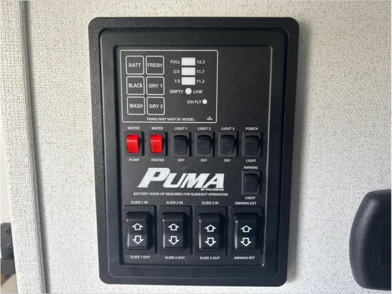 Each Puma Vista destination trailer by Forest River is designed to give you unforgettable getaways to the destination of your choice! The Value Shopper Package features Congoleum linoleum, LED lighting, an AM/FM/Bluetooth stereo, and a tankless water heater to name a few comforts. There are also solid surface countertops, a 12V ceiling fan in the living room, an outside shower, two exterior speakers, and more amenities found within the Vista Marquis and Vista LFT Loft Packages!