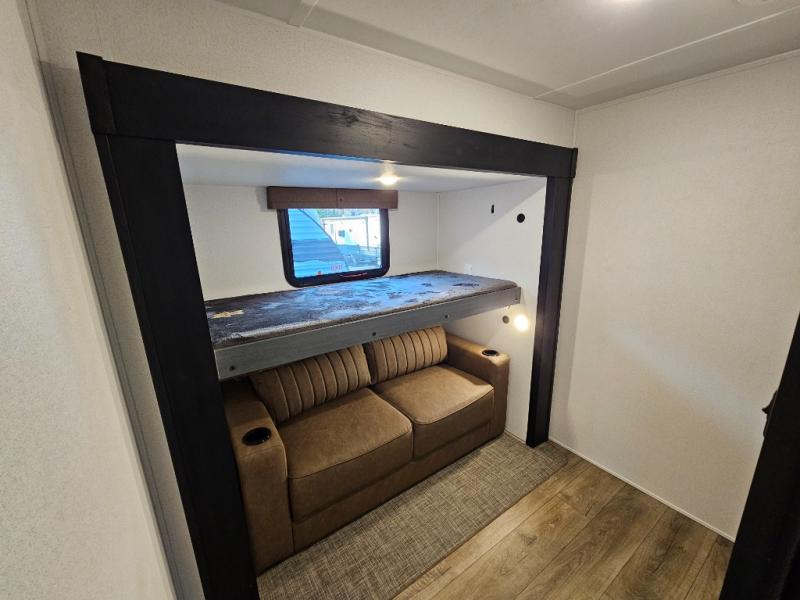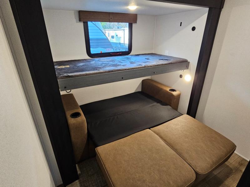 Middle bunkhouse with upper bunk and tri-fold sofa
