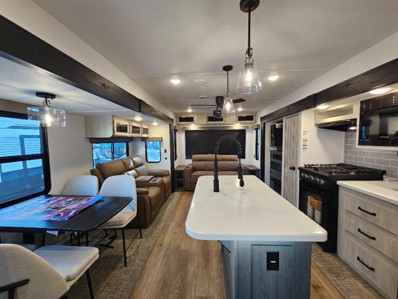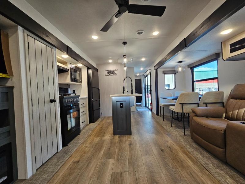 The Puma Vista 38RLB offers the perfect balance of privacy, space, and residential comfort. The middle bunkhouse creates a dedicated area for kids or guests, while the spacious rear living room and kitchen island make entertaining easy. With a washer/dryer, theater seating, and destination-style living space, this trailer is ideal for long weekends or seasonal stays at your favorite getaway.