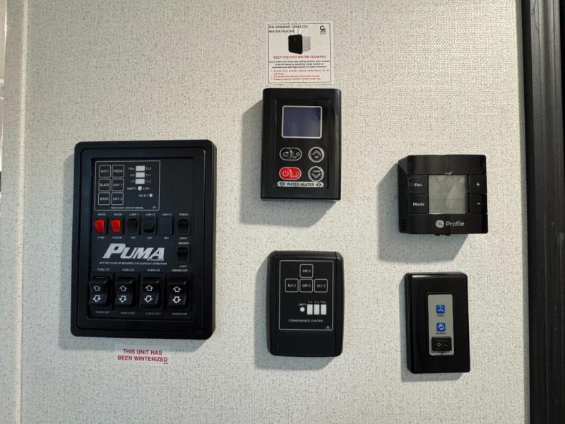 Get out of town and start enjoying the beautiful weather and scenery where you have chosen to place this Puma Destination. This spacious trailer has three slide outs for lots of interior floor space, plus two entries for convenience. The front bedroom offers a king bed slide, two closets, and a dresser. The rear bedroom suite includes a full bathroom and a queen bed slide, a vanity and a wardrobe. In between you can relax in the combined living and kitchen area on the sofa or booth dinette while visiting with the cook with full amenities.