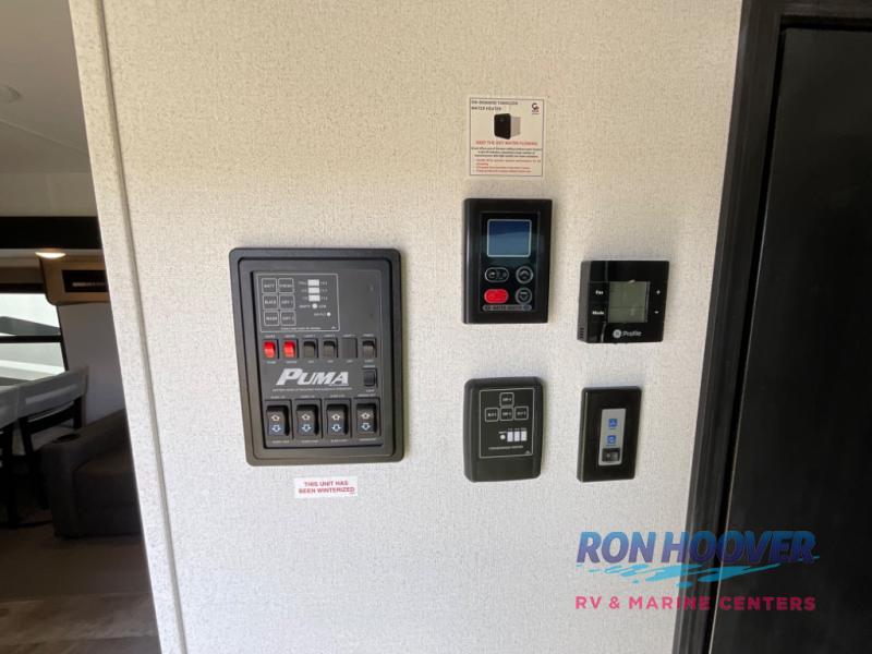 Each Puma Destination trailer by Palomino is designed to give you unforgettable getaways to the destination of your choice! The Value Shopper Package features Congoleum linoleum, LED lighting, an AM/FM/Bluetooth stereo, and an upgraded kitchen faucet to name a few comforts. Two exterior speakers are included with the required Marquis Edition, along with solid surface countertops, night roller shades, an outside shower, and four stabilizer jacks to help keep your unit secure. You will also appreciate the roof and side mount solar prep for off-grid capabilities, as well as WiFi prep if you need the option to work while you're away from home!