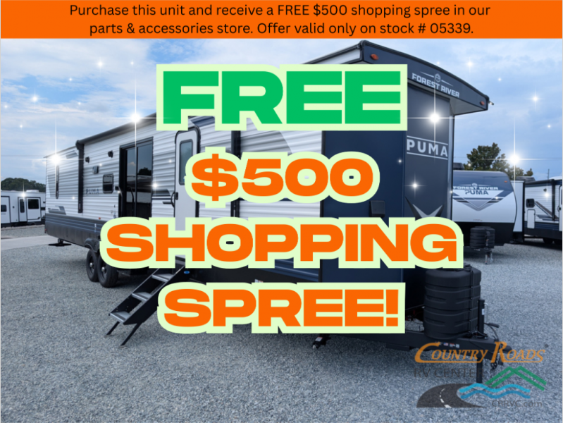 Each Puma Destination trailer by Palomino is designed to give you unforgettable getaways to the destination of your choice! The Value Shopper Package features Congoleum linoleum, LED lighting, an AM/FM/Bluetooth stereo, and an upgraded kitchen faucet to name a few comforts. Two exterior speakers are included with the required Marquis Edition, along with solid surface countertops, night roller shades, an outside shower, and four stabilizer jacks to help keep your unit secure. You will also appreciate the roof and side mount solar prep for off-grid capabilities, as well as WiFi prep if you need the option to work while you're away from home!
