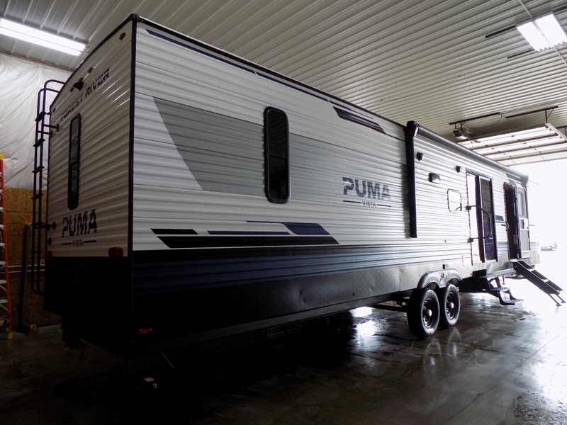 Each Puma Vista destination trailer by Forest River is designed to give you unforgettable getaways to the destination of your choice! The Value Shopper Package features Congoleum linoleum, LED lighting, an AM/FM/Bluetooth stereo, and a tankless water heater to name a few comforts. There are also solid surface countertops, a 12V ceiling fan in the living room, an outside shower, two exterior speakers, and more amenities found within the Vista Marquis and Vista LFT Loft Packages!