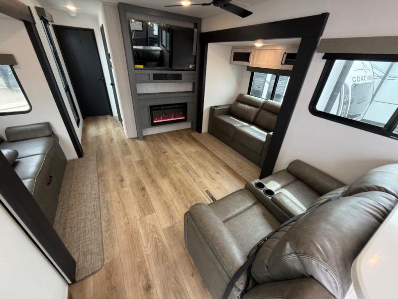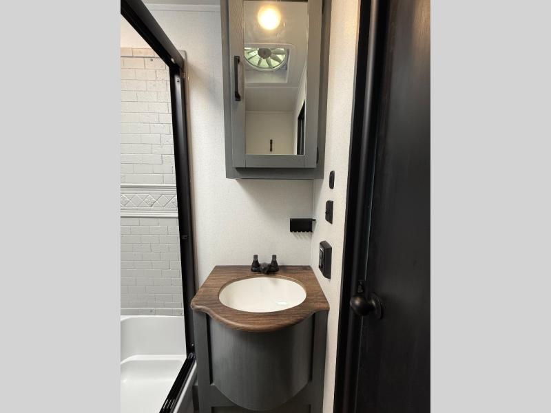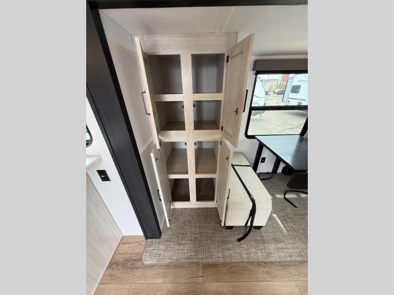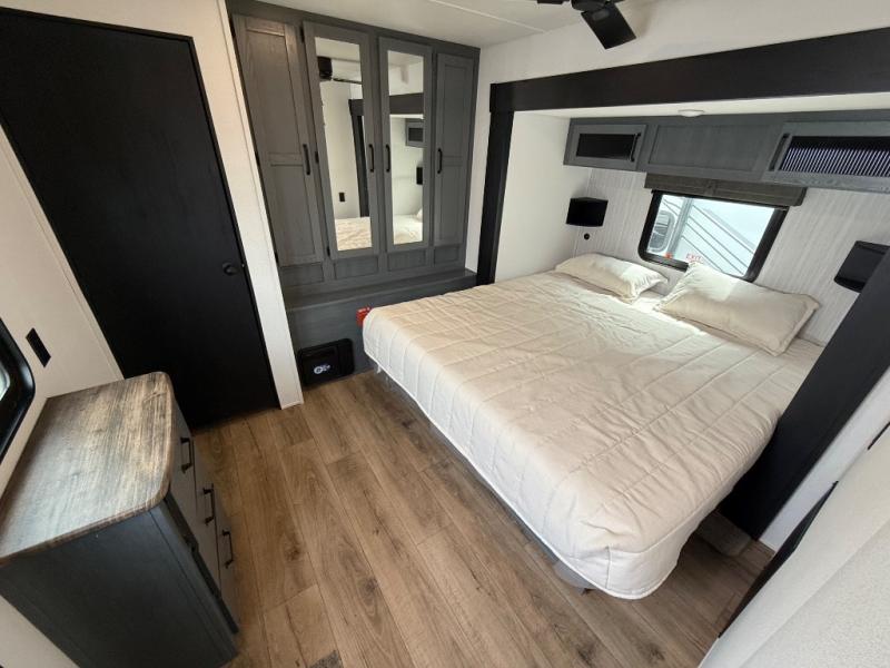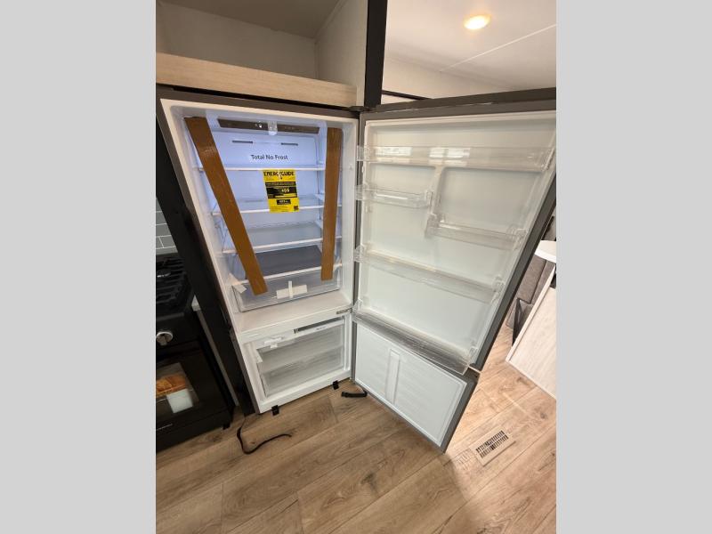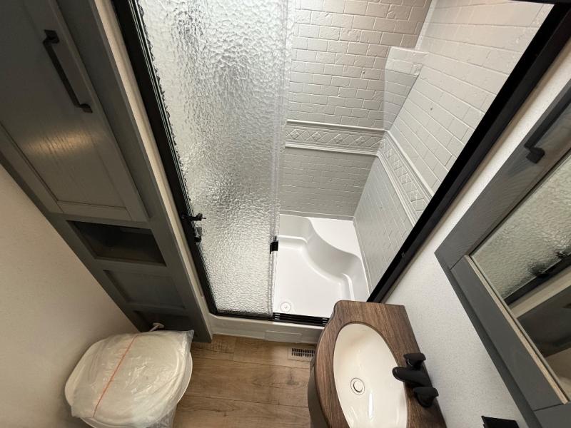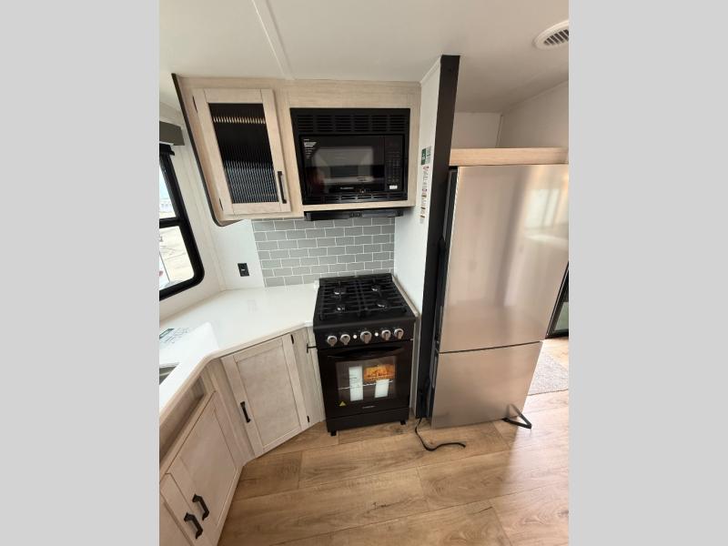 If you are looking for your own space in your next destination trailer, you have found it! With a front separate kitchen, a middle separate living area, a full bathroom and a rear bedroom, you can call one of these spaces your own. The cook will love the front counter space and appliances, and you can dine at the booth dinette or the breakfast nook. Someone can be visiting with friends and family while sitting on the two sofa slides or the two recliners, while another is getting ready in the full bathroom. You will sleep soundly on the king bed slide out, and the closet with washer and dryer prep option will make full-time RV living easier than ever.
