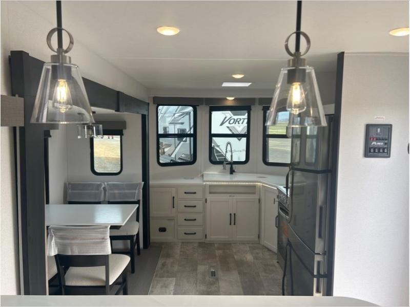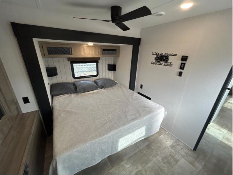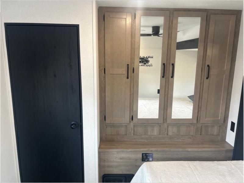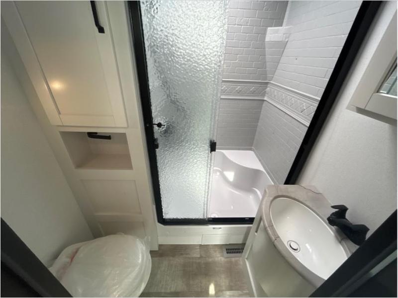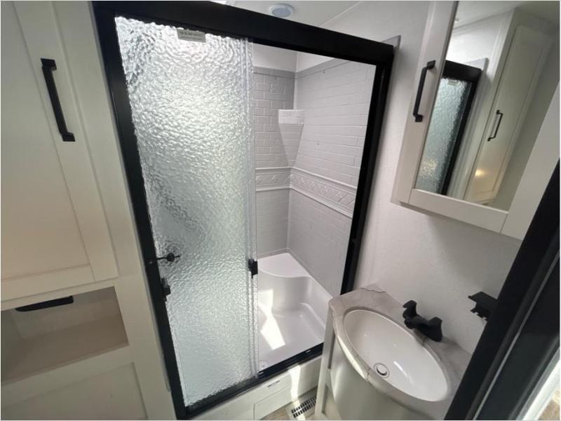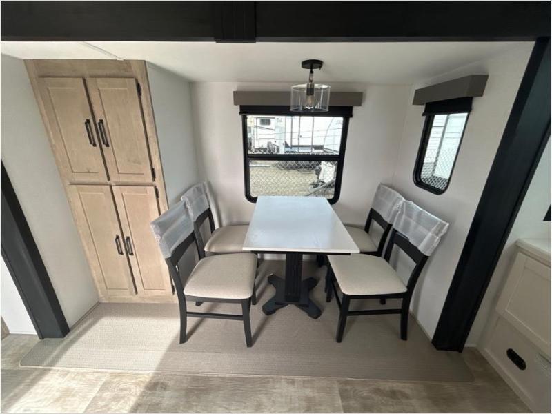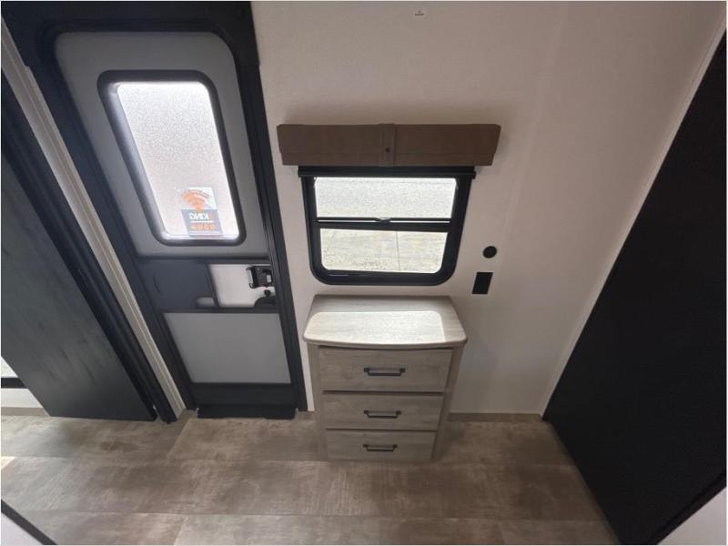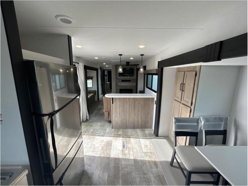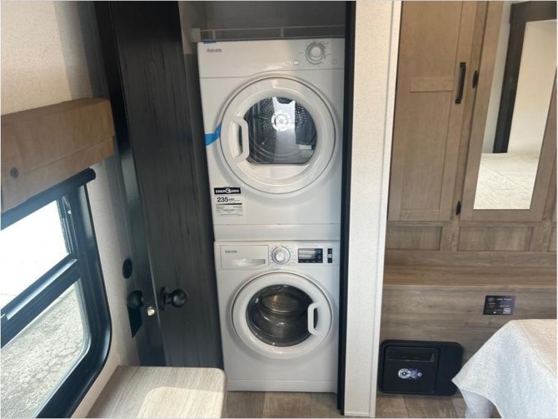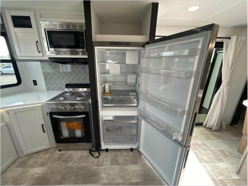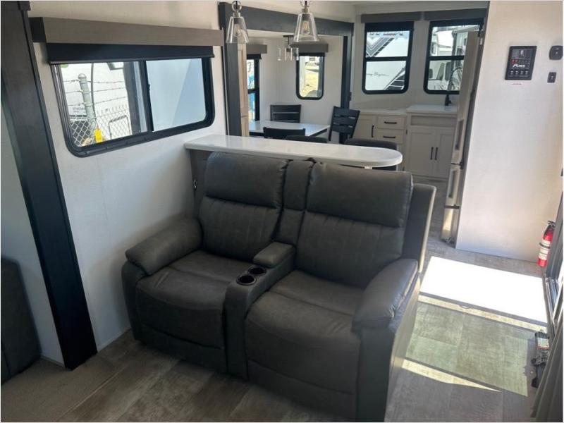 If you are looking for your own space in your next destination trailer, you have found it! With a front separate kitchen, a middle separate living area, a full bathroom and a rear bedroom, you can call one of these spaces your own. The cook will love the front counter space and appliances, and you can dine at the table and chairs or the breakfast nook. Someone can be visiting with friends and family while sitting on the two sofa slides or the theater seating, while another is getting ready in the full bathroom. You will sleep soundly on the king bed slide out, and the closet with washer and dryer prep will make full-time RV living easier than ever.