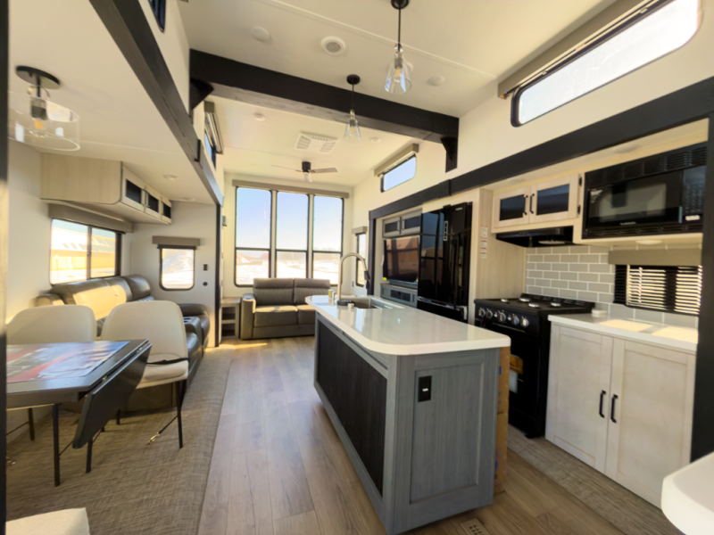 Compared to smaller travel trailers and fifth wheels, the 401RLFT focuses on space and livability. It’s a better choice for campers who want residential comfort without frequent towing.