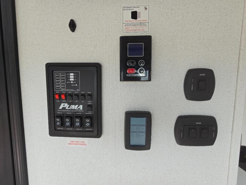 Each Puma Destination trailer by Palomino is designed to give you unforgettable getaways to the destination of your choice! The required Value Shopper Loft Package includes Congoleum designer linoleum, night roller shades, LED lighting, and a 24" stainless steel oven with a four burner stove so you can make meals just like you would at home. The tankless water heater is another feature you won't want to camp without, and there is WiFi prep, solar prep, plus optional washer and dryer prep for the option to further customize your trailer. An outside shower is included with the required Loft Package, along with two exterior speakers, solid surface countertops, four stabilizer jacks, and more!