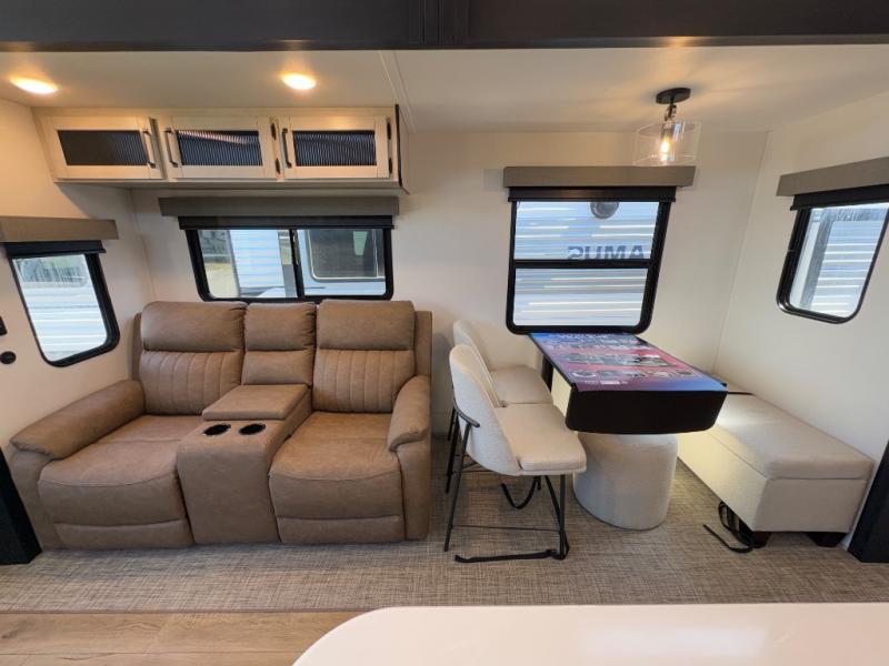 Each Puma Destination trailer by Palomino is designed to give you unforgettable getaways to the destination of your choice! The required Value Shopper Loft Package includes Congoleum designer linoleum, night roller shades, LED lighting, and a 24" stainless steel oven with a four burner stove so you can make meals just like you would at home. The tankless water heater is another feature you won't want to camp without, and there is WiFi prep, solar prep, plus optional washer and dryer prep for the option to further customize your trailer. An outside shower is included with the required Loft Package, along with two exterior speakers, solid surface countertops, four stabilizer jacks, and more!