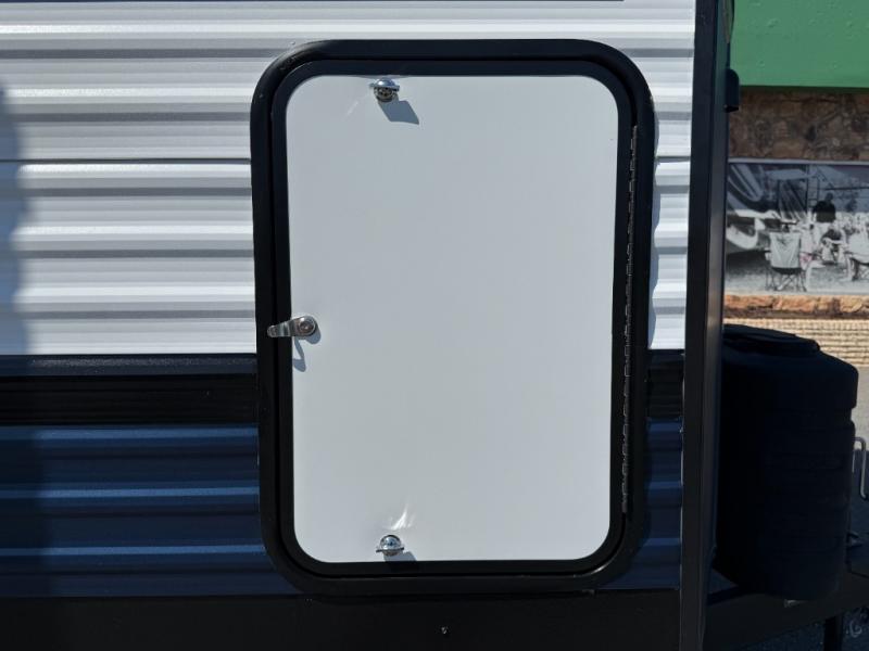 Sturdy build with powder-coated frames, AlphaPly rubber roofing, 5/8? tongue-and-groove plywood flooring, enclosed underbelly, solar prep, back-up camera prep, 4 stabilizer jacks, pass-through storage, etc.