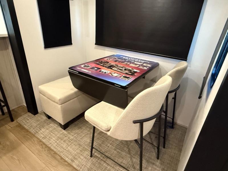 Living Area: 50? TV, electric (color-changing) fireplace, tri-fold sofa (optional configurations), ceiling fan, LED lighting