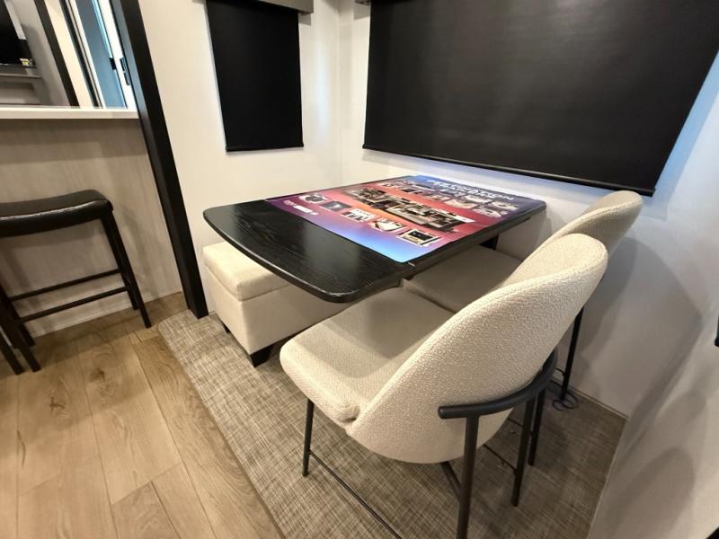 50 amp service, tankless water heater, washer/dryer prep, Wi-Fi prep, stereo with Bluetooth, black tank flush, patio door, residential-style amenities, TV hookups, night roller shades, etc.