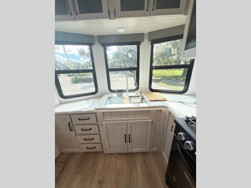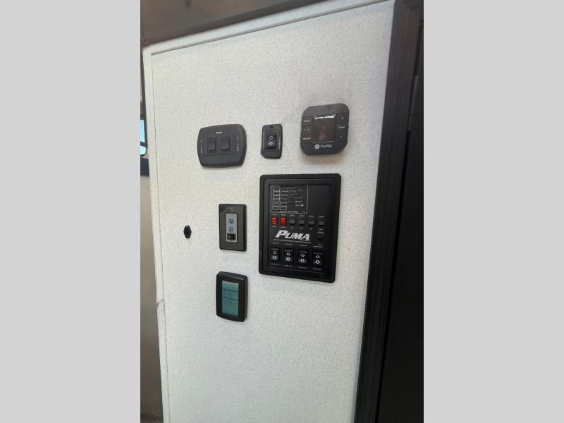 Each Puma Destination trailer by Palomino is designed to give you unforgettable getaways to the destination of your choice! The required Value Shopper Loft Package includes Congoleum designer linoleum, night roller shades, LED lighting, and a 24" stainless steel oven with a four burner stove so you can make meals just like you would at home. The tankless water heater is another feature you won't want to camp without, and there is WiFi prep, solar prep, plus optional washer and dryer prep for the option to further customize your trailer. An outside shower is included with the required Loft Package, along with two exterior speakers, solid surface countertops, four stabilizer jacks, and more!