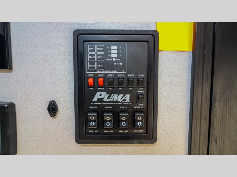 Each Puma Vista destination trailer by Forest River is designed to give you unforgettable getaways to the destination of your choice! The Value Shopper Package features Congoleum linoleum, LED lighting, an AM/FM/Bluetooth stereo, and a tankless water heater to name a few comforts. There are also solid surface countertops, a 12V ceiling fan in the living room, an outside shower, two exterior speakers, and more amenities found within the Vista Marquis and Vista LFT Loft Packages!
