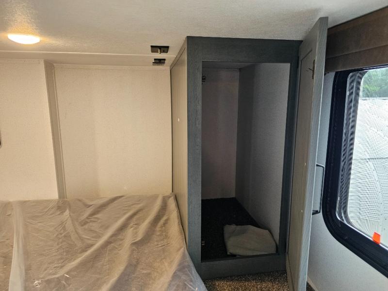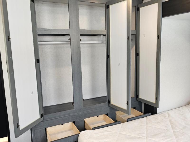Second loft (above rear bath) with 32" x 80" bunk mat and additional closet for storage