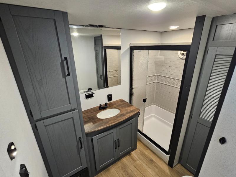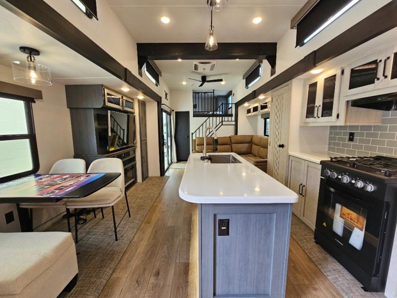 Perfect for families or extended-stay campers, the 420LFT offers flexible loft sleeping, a spacious layout, and the convenience of residential-style features. From its double lofts and island kitchen to its solid construction and smart storage, this destination trailer is designed to feel like home—no matter where you’re parked.