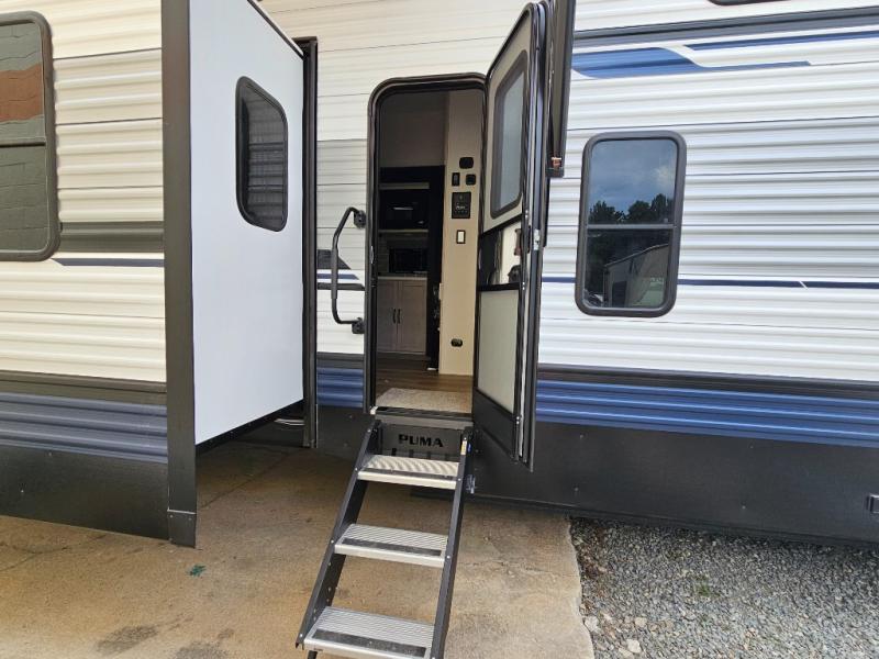 The Puma Destination 420LFT combines residential-style comfort with a versatile loft design, giving families and groups the perfect blend of luxury and practicality. With two loft areas, triple slides, and thoughtful storage solutions, this destination trailer is built for extended stays and unforgettable getaways.