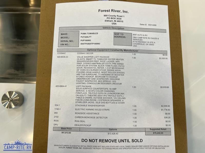 New 2026 Forest River RV Puma Vista 420LFT Destination Trailer