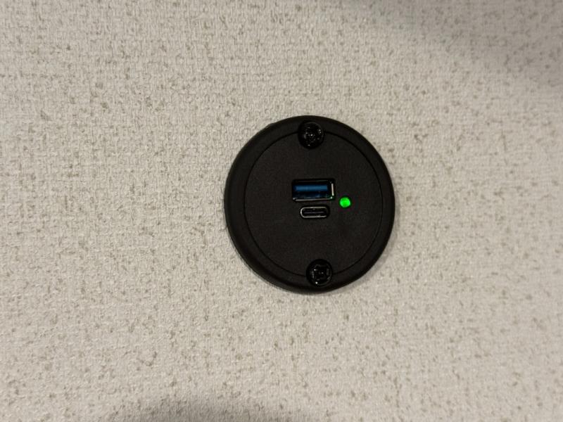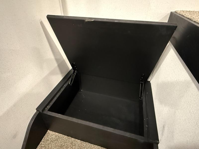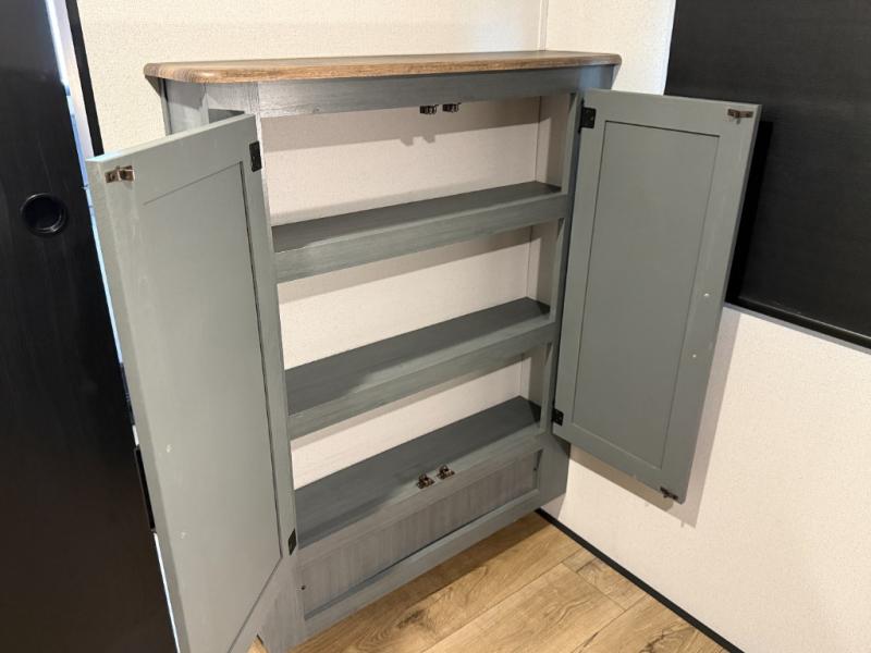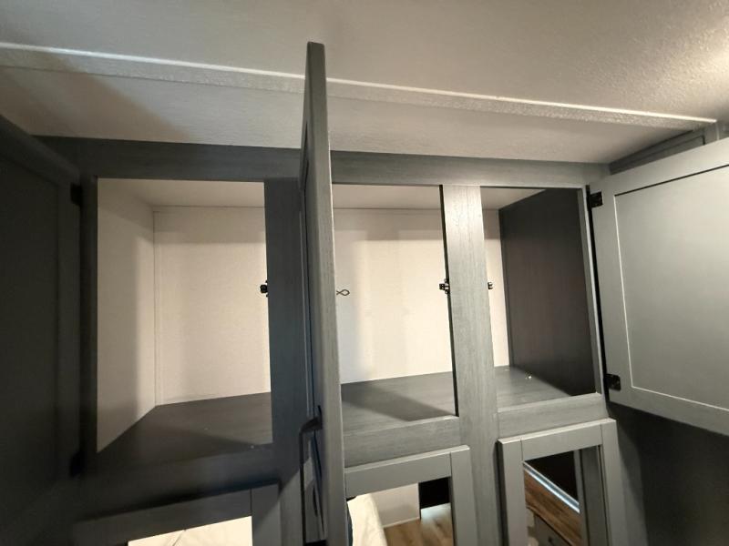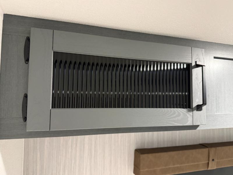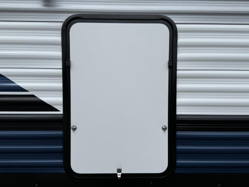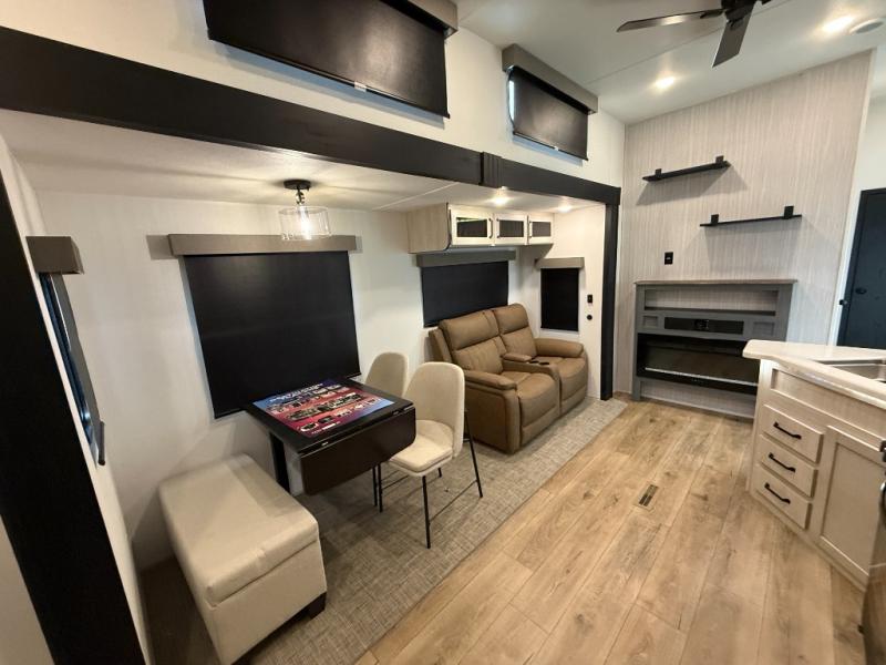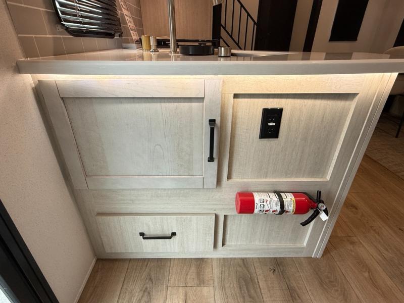 50?amp service (for 2nd AC prep), solid surface countertops, outside shower, 12?V ceiling fan in living area, exterior speakers, electric fireplace (5,100?BTU)