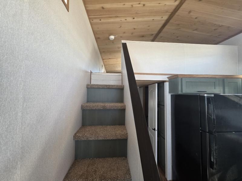 Look no further than this Quailridge park model for comfort! You will enjoy relaxing each night in the front living area on either the sofa or the recliner chair; just pop a bag of popcorn into the microwave, and you will be all set. After you have whipped up a delicious meal in the kitchen with the four-burner range, you can sit down at the table and chairs to dine together and maybe play a board game afterwards. Inside the rear private bedroom, you will find everything you need to make yourself right at home including two closets, and a Serta queen mattress with nightstands on either side to place your electronics each night. This unit also includes a loft with a railing plus an entertainment center!
