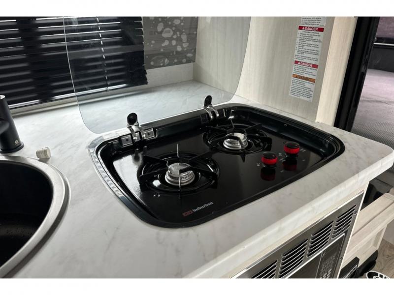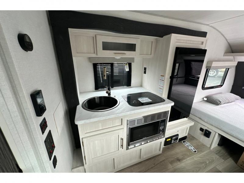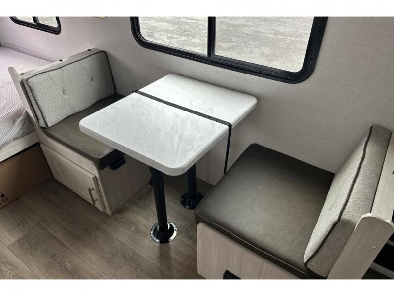 Get ready to travel just about anywhere with this lightweight travel trailer! This model is ideal for any couple. There is sleeping space on the front queen bed, and the booth dinette can easily convert into a sleeping spot for another tired camper. The slide out along the roadside helps open up the floor space, plus you will find all of the kitchen amenities here. The spacious full rear bath with a night light in the rear has plenty of room to easily get ready for any adventure that lies ahead. You will also enjoy all of the exterior storage for all of your outdoor camping gear. This model also includes the Hood River Edition that comes with Mud Legend all terrain tires with TPMS, a MaxxAir vent cover, and 12V tank heaters!