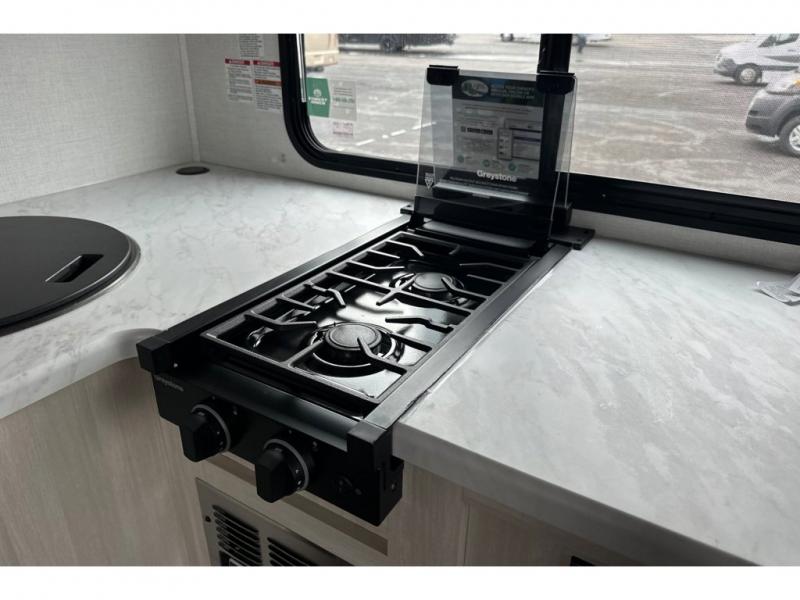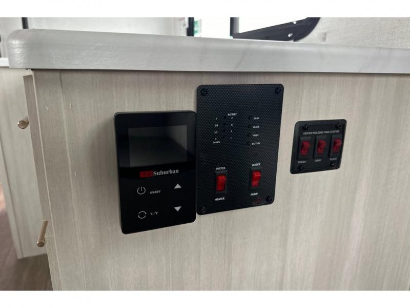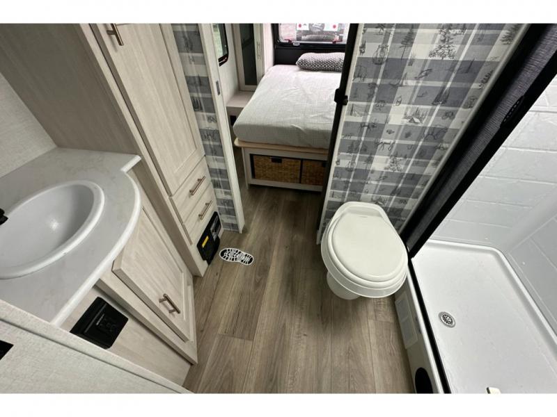With any R-Pod travel trailer by Forest River, you will enjoy affordable luxury at the lowest tow weight in its class! There is a sealed underbelly with forced heat, a curved dual-pane acrylic front window with a bug screen and night shade, plus a large roof mounted solar panel for off-grid capabilities. The 15K A/C unit will keep you comfortable during the summer camping months, and the tankless water heater will provide endless hot showers after hiking, biking, swimming and more! Each model also includes a black glass friction hinge entrance door, roof ladder prep, exterior motion lighting, plus a hot and cold exterior spray port to wash off sand from the beach. Inside, you'll enjoy seamless Surf-X kitchen countertops, blackout roller shades, and a central vacuum system for hassle-free cleaning!