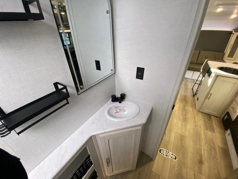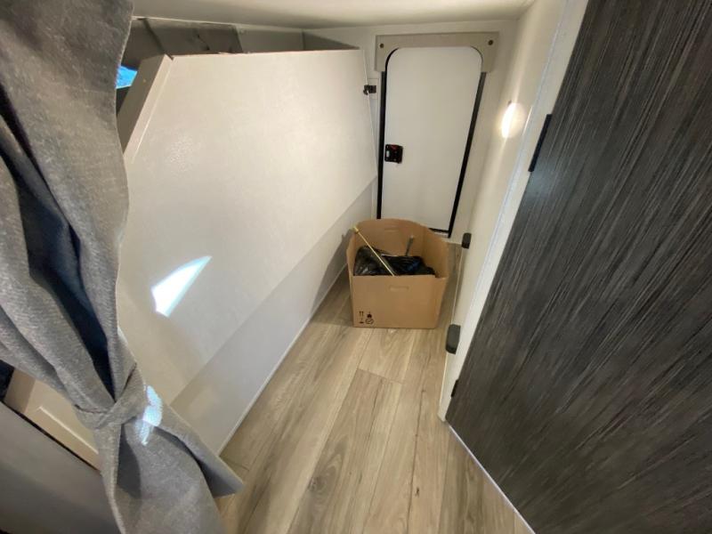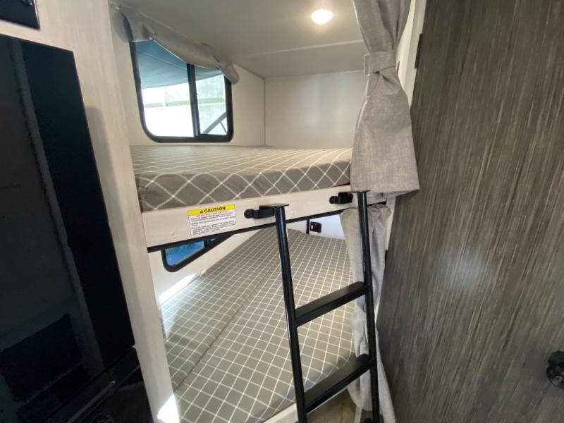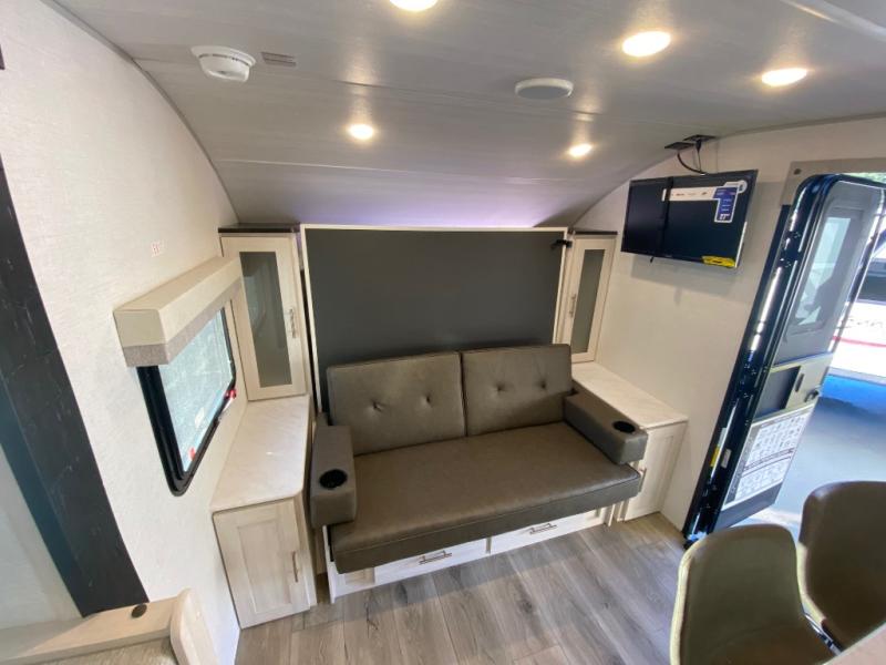 This travel trailer offers a great flexible floorplan. The living area sofa hides a Murphy bed which can be folded down at night, giving you full use of the room during the day. At the rear is a pair of double-size bunks which provide a spacious private sleeping area for children or guests. The booth dinette can also be used for an additional bed as needed. An efficient kitchen includes a bar top with high chairs plus a convection microwave and cooktop to cook meals each day. This model also includes the Hood River Edition that comes with Mud Legend all terrain tires with TPMS, advanced ground clearance, a MaxxAir vent cover, and 12V tank heaters!