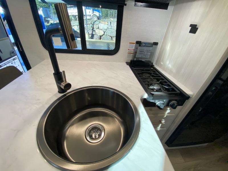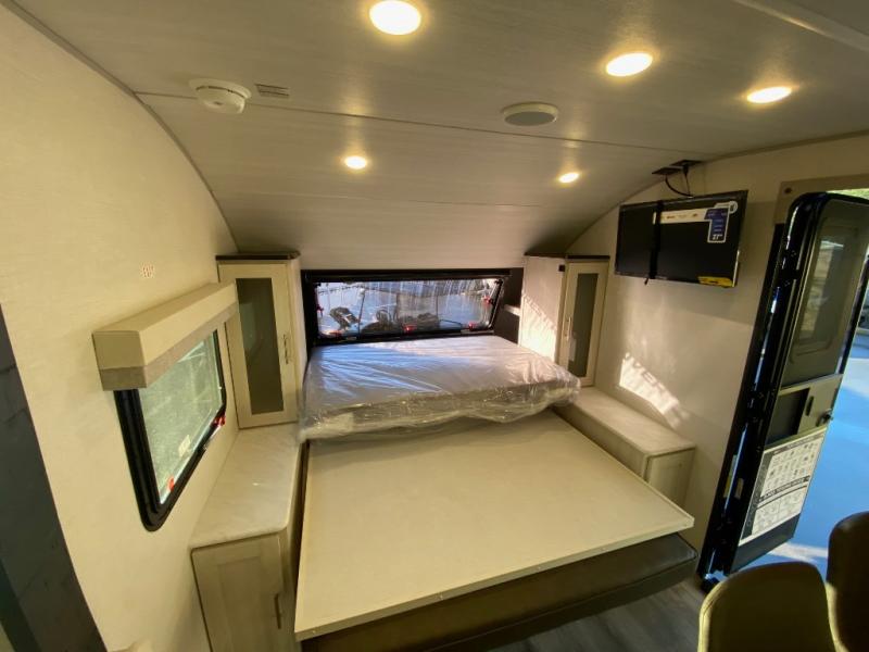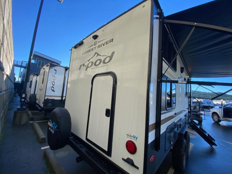 With any R-Pod travel trailer by Forest River, you will enjoy affordable luxury at the lowest tow weight in its class! There is a sealed underbelly with forced heat, a curved dual-pane acrylic front window with a bug screen and night shade, plus a large roof mounted solar panel for off-grid capabilities. The 15K A/C unit will keep you comfortable during the summer camping months, and the tankless water heater will provide endless hot showers after hiking, biking, swimming and more! Each model also includes a black glass friction hinge entrance door, roof ladder prep, exterior motion lighting, plus a hot and cold exterior spray port to wash off sand from the beach. Inside, you'll enjoy seamless Surf-X kitchen countertops, blackout roller shades, and a central vacuum system for hassle-free cleaning!